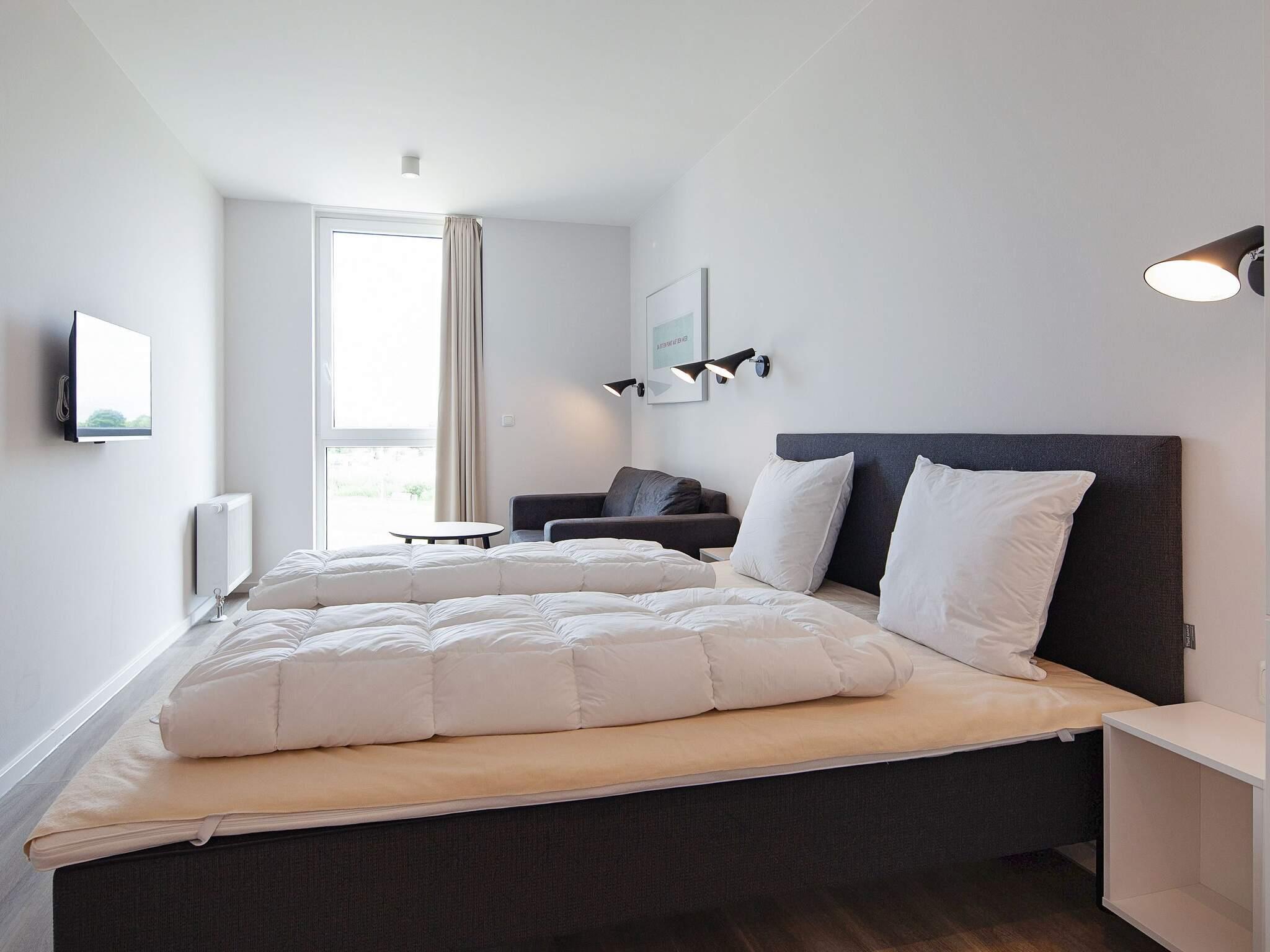 Kikkert kan lånes på servicekontoret, så du kan se skibe, havfugle eller bare nyde den uendelige horisont. Bemærk: Selvom alle lejligheder er bygget efter samme høje standard, kan indretningen variere lidt.