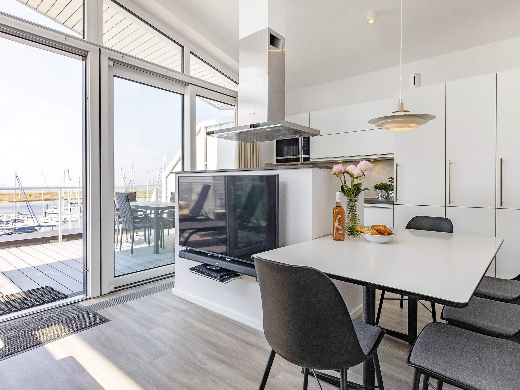 Denne penthouse-lejlighed ligger lige ved havnefronten i Marina Wendtorf og føles som en lille oase ved havet. Træd indenfor, og du bliver mødt af lyse interiører og en stue, der åbner direkte ud til en rummelig tagterrasse. Her begynder morgenen med kaffe og udsigt over sejlbåde, der glider ud på Østersøen, og aftenen tilbringes bedst med et glas i hånden, mens solen går ned over havnen. Den panoramiske udsigt, både fra terrassen og gennem de store stuevinduer, får havet til at føles som en del af hjemmet.