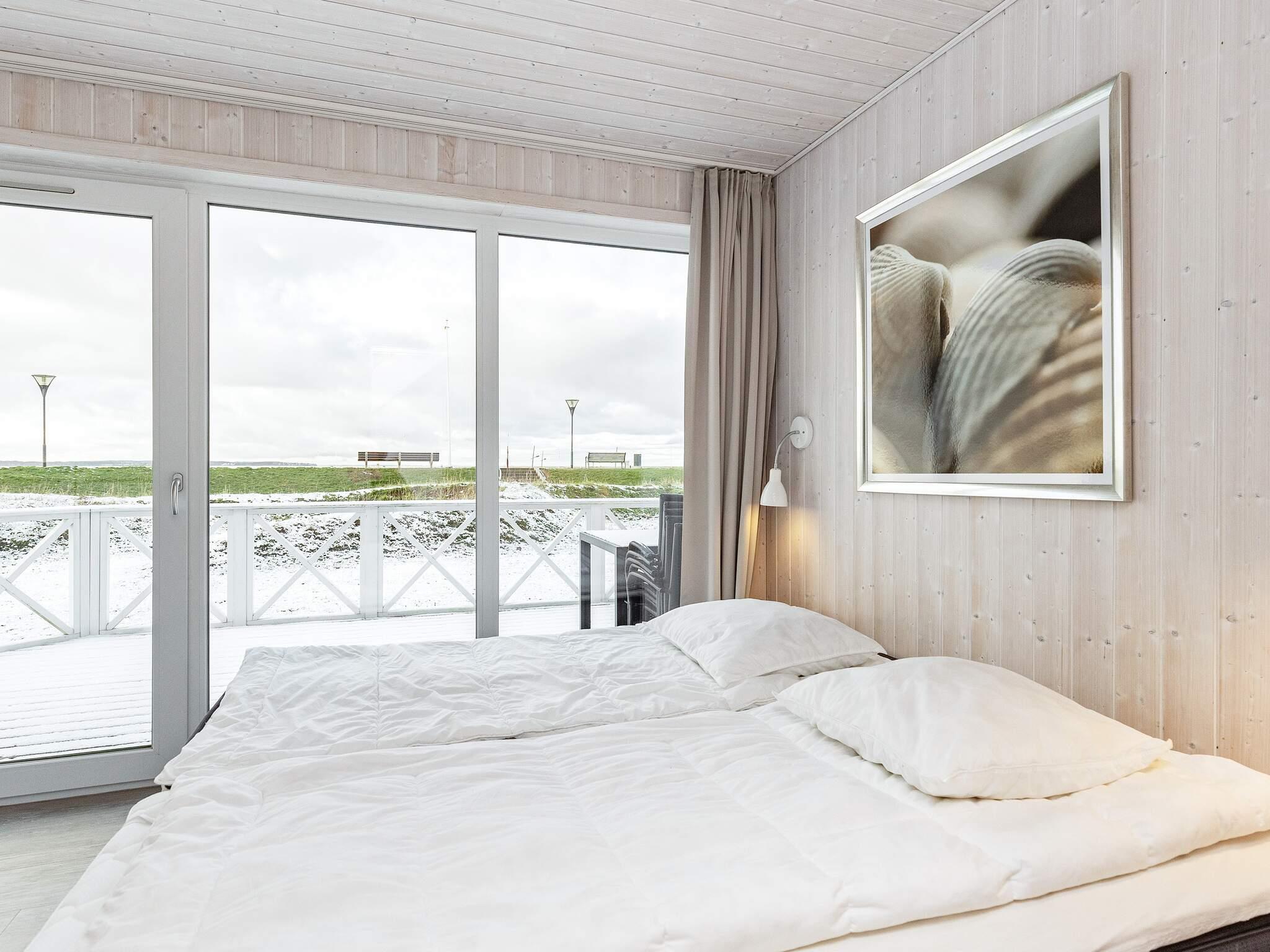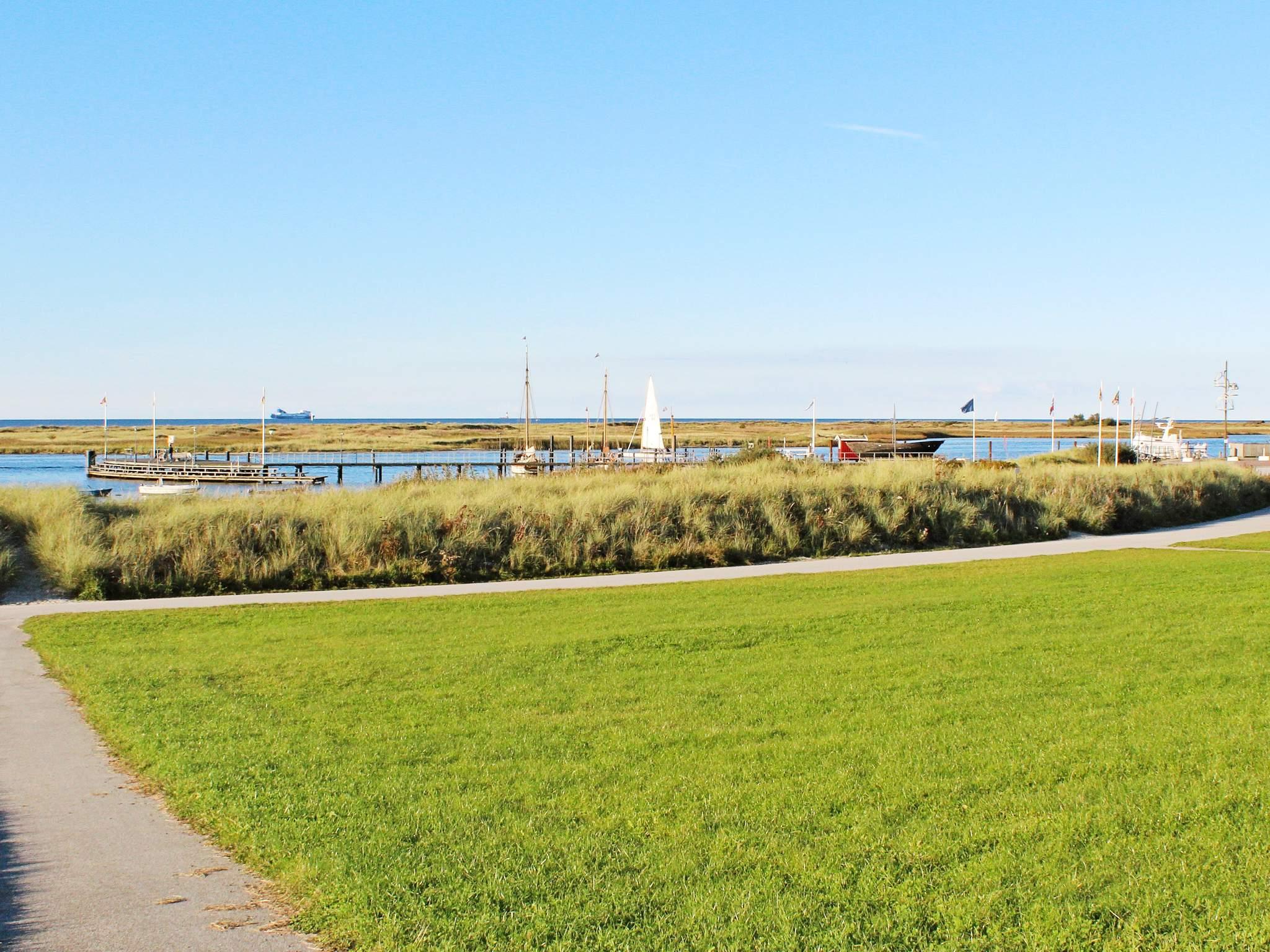 Køkken, spise- og opholdsstue ligger på 1. sal sammen med et badeværelse, hvorfra I har et flot udsyn over vandet og området. Herfra er der udgang til den praktisk overdækkede terrasse på 1. etage, den såkaldte loggia, hvor I kan forlænge den skønne sommeraften og nyde panoramaudsigt mod diget og den bagvedliggende strand. Huset er på 1. sal udstyret med en kikkert, så I nøje kan betragte fugle, skibsfart og den pragtfulde udsigt.