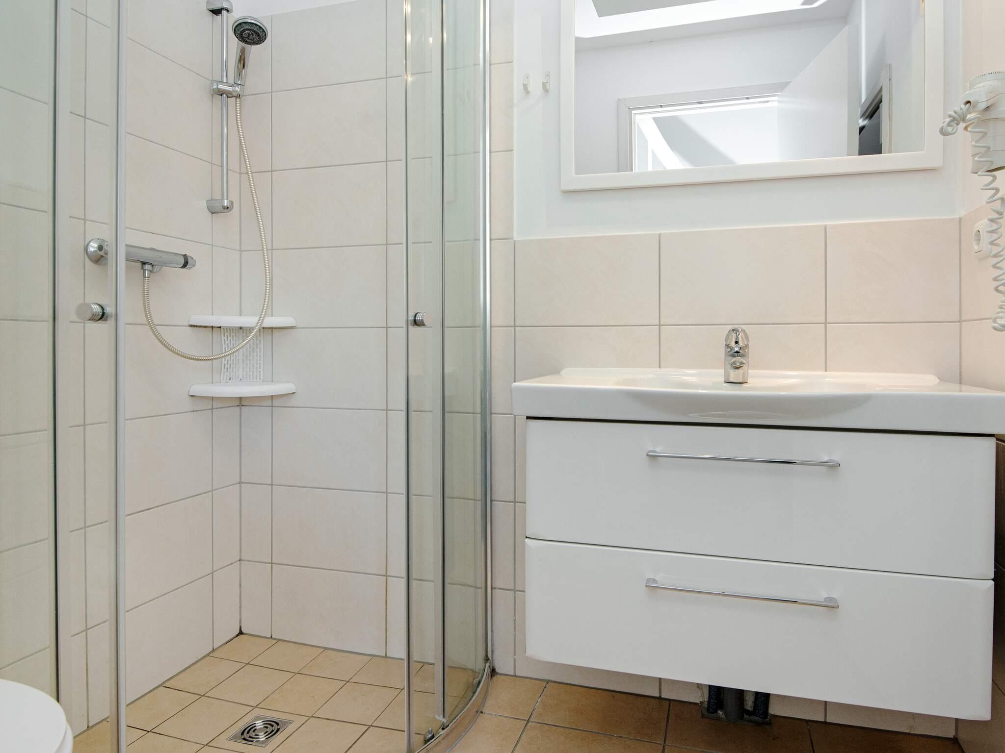 Køkken, spise- og opholdsstue ligger på 1. sal sammen med et badeværelse, hvorfra I har et flot udsyn over området. Herfra er der udgang til den praktisk overdækkede terrasse på 1. etage, den såkaldte loggia, hvor I kan forlænge den skønne sommeraften og nyde panoramaudsigt mod diget og den bagvedliggende strand. Huset er på 1. sal udstyret med en kikkert, så I nøje kan betragte fugle, skibsfart og den pragtfulde udsigt.