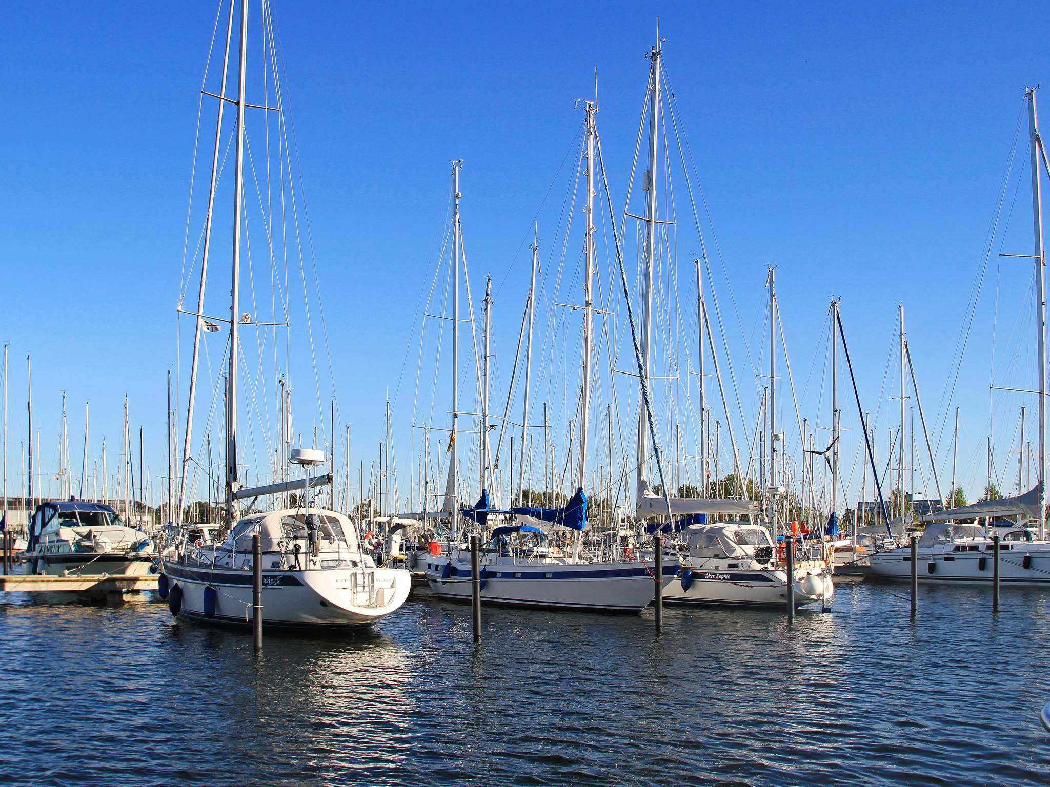 Omgivelserne inviterer til spadsereture i havneområdet og strandture til den dejlige sandstrand, som ligger i umiddelbar forbindelse med havneområdet. På den nærliggende landtange, Bottsand, er der ligeledes en pragtfuld sandstrand. Her kan I vælge mellem tekstilstrand og nudiststrand. Hvis I har lyst til at overvære verdens største sejlsportsbegivenhed, Kieler Woche, der som regel finder sted den sidste hele uge i juni, har I her det perfekte udgangspunkt.