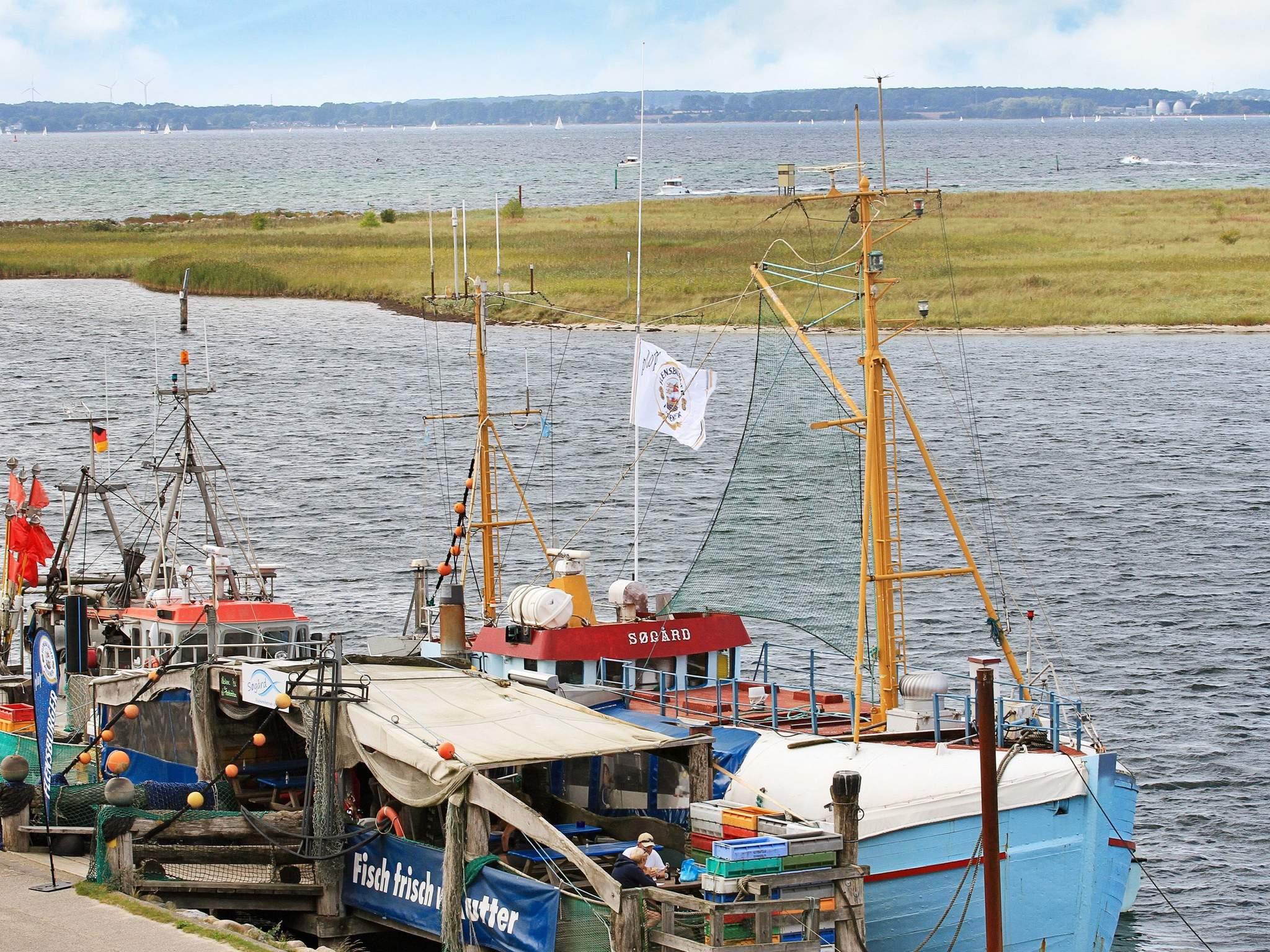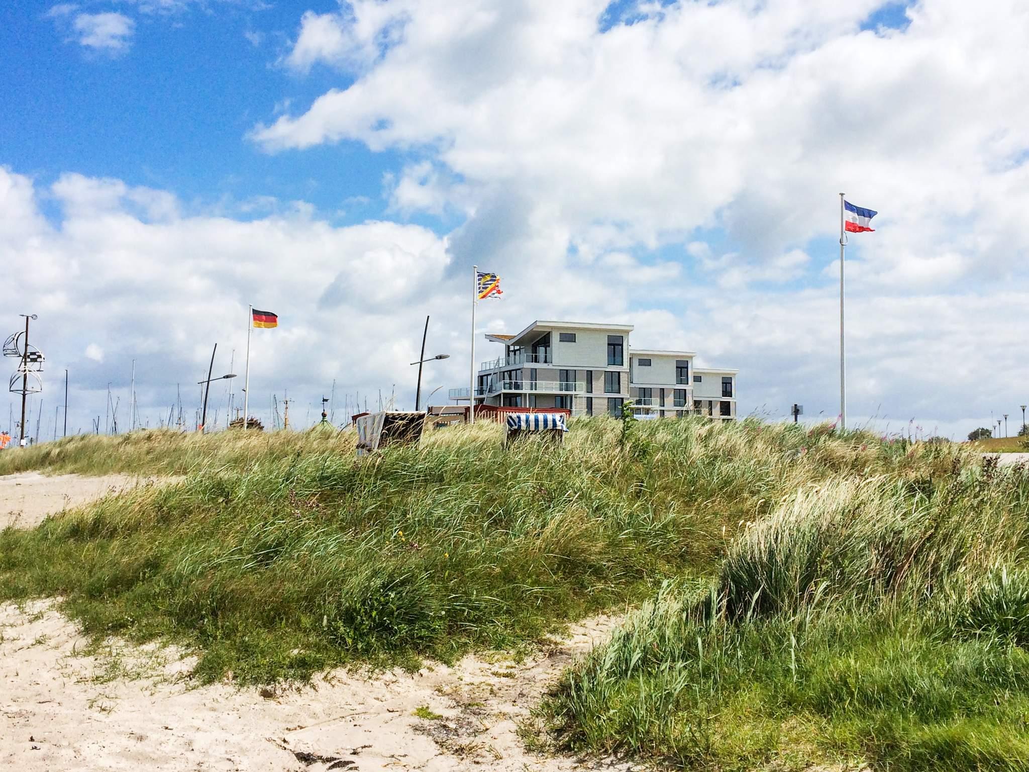 Nærområdet indbyder til slentreture i havneområdet og strandture til den dejlige sandstrand, som ligger i umiddelbar forbindelse med havneområdet. På den nærliggende landtange, Bottsand, kan I vælge mellem tekstilstrand og nudiststrand. Med lejlighedens kikkert kan I følge livet på havet – blandt andet den livlige skibstrafik til og fra Kielerkanalen og de smukke sejlbåde, som særligt i sommermånederne præger billedet. Og bor I her i Kieler Woche, som normalt ligger i den sidste hele uge af juni, kan I fra jeres stue og terrasse betragte verdens største sejlsportsarrangement.