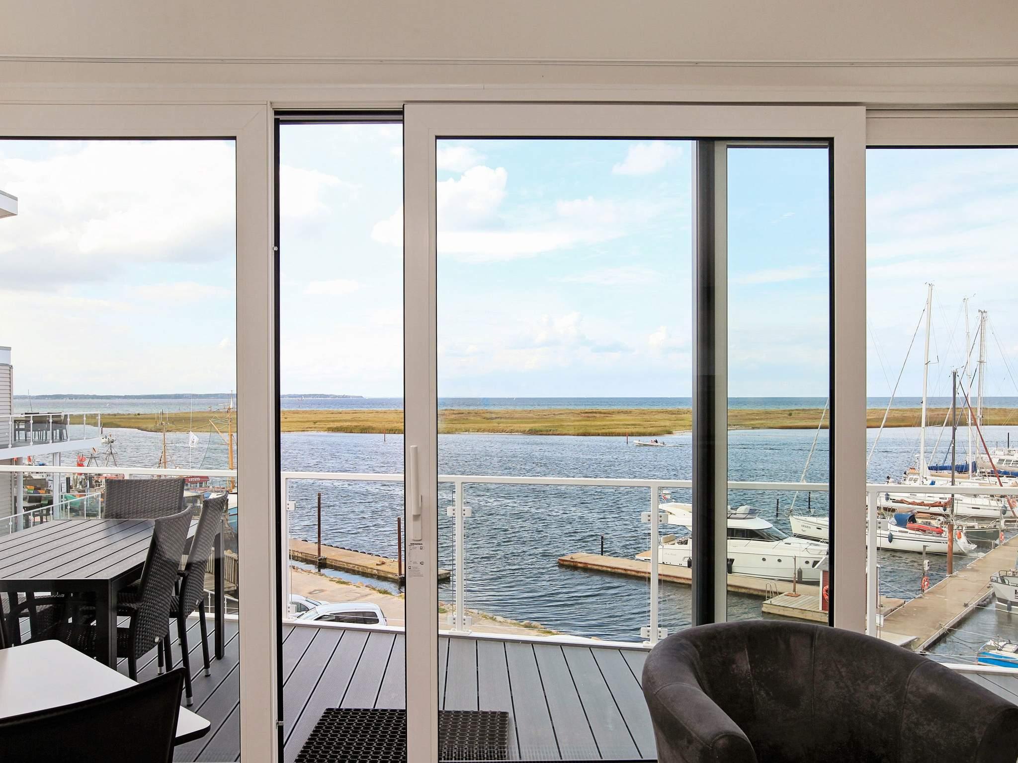Moderne og komfortabelt møbleret ferielejlighed på 1. sal med udsigt til Østersøen og den hyggelige lystbådehavn.