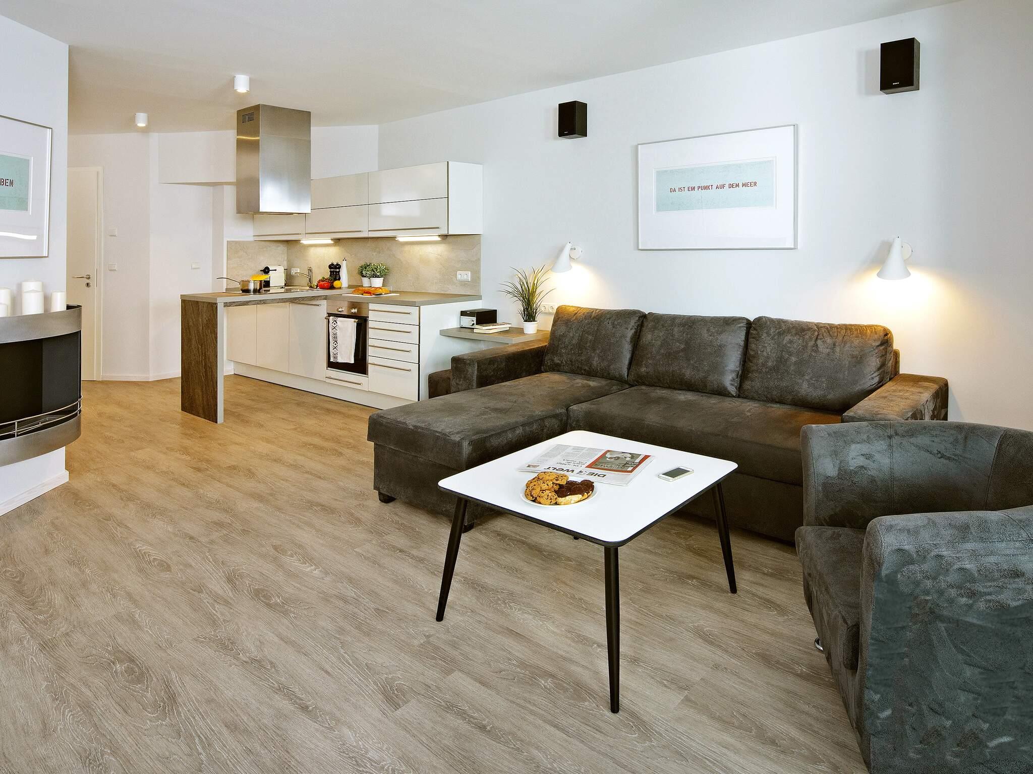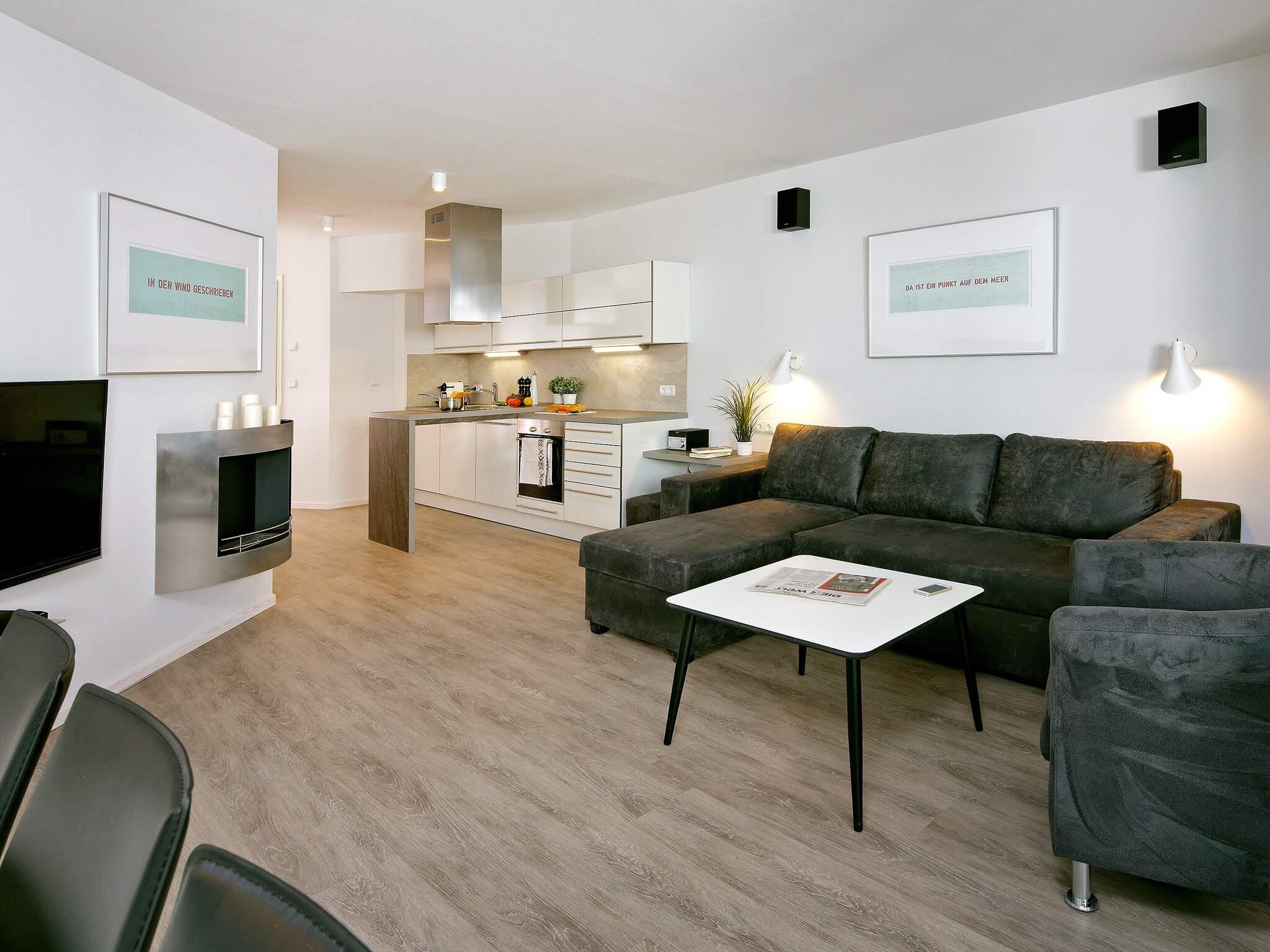 Lejligheden består af en køkken-/stueafdeling med adgang til balkonen, to soveværelser med dobbeltsenge og et med to enkeltsenge samt badeværelse med dobbelt bruseniche/dampbad. Der er fladskærms-tv ikke kun i stuen men også på hvert af de to værelser. Der er bioethanol-pejs. Der er nem adgang til lejligheden via elevator.