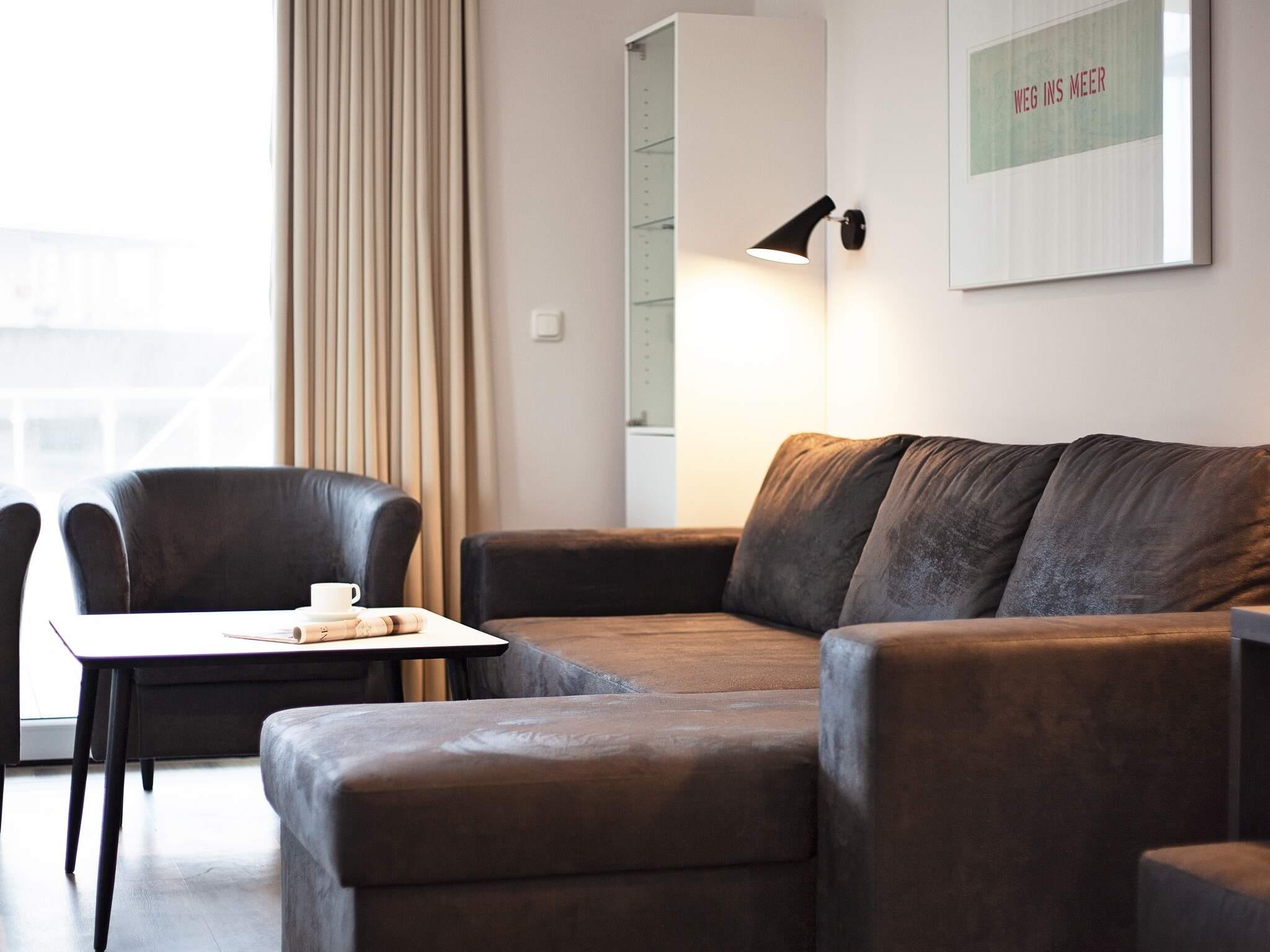 Mærk den maritime atmosfære, mens I slentrer en aftentur på havnen eller nyd aftenstemningen fra jeres terrasse eller balkon, hvis I da ikke foretrækker at slappe af i stuen, mens flammerne fra biokaminen spreder hygge og feriestemning.