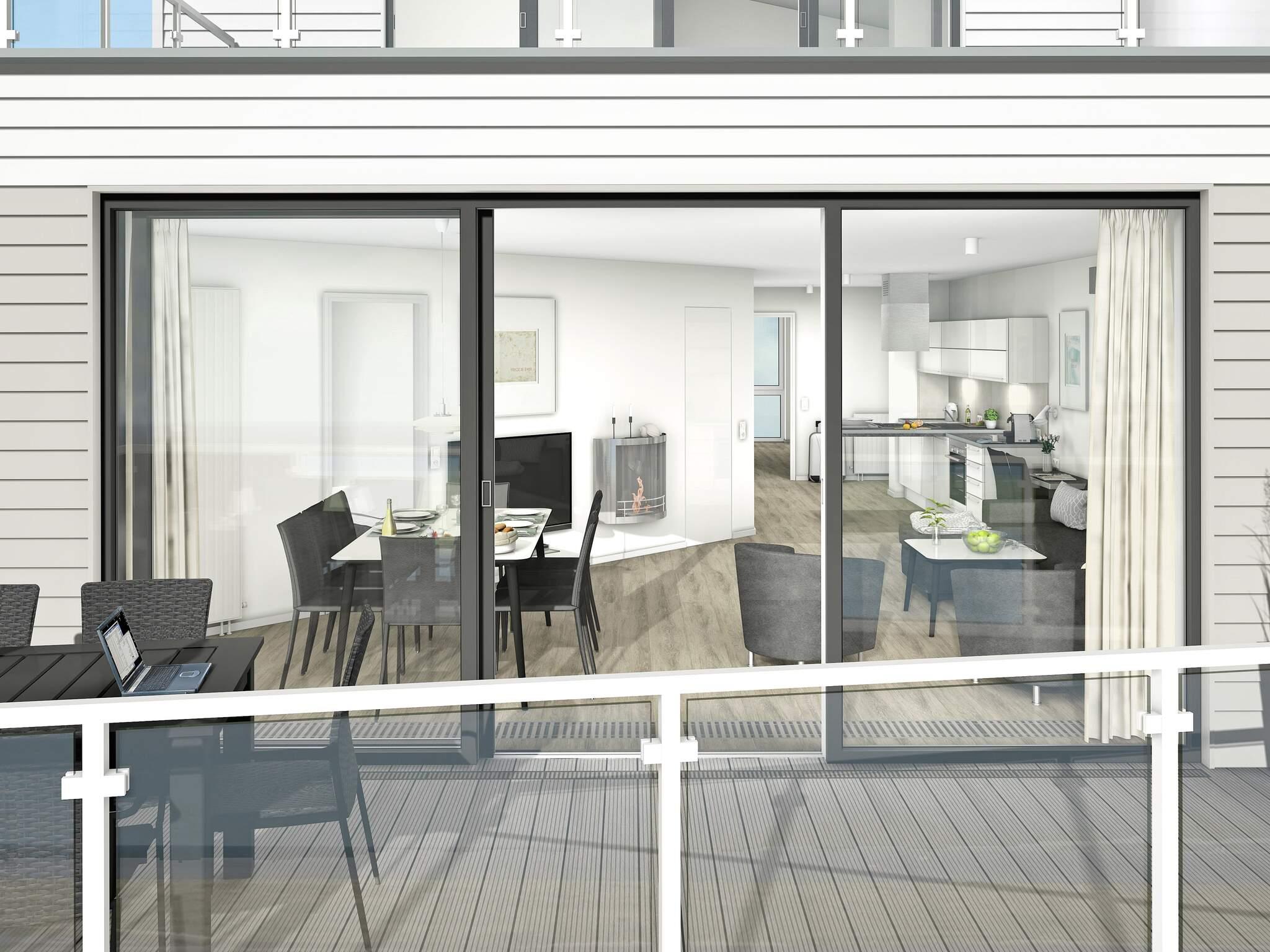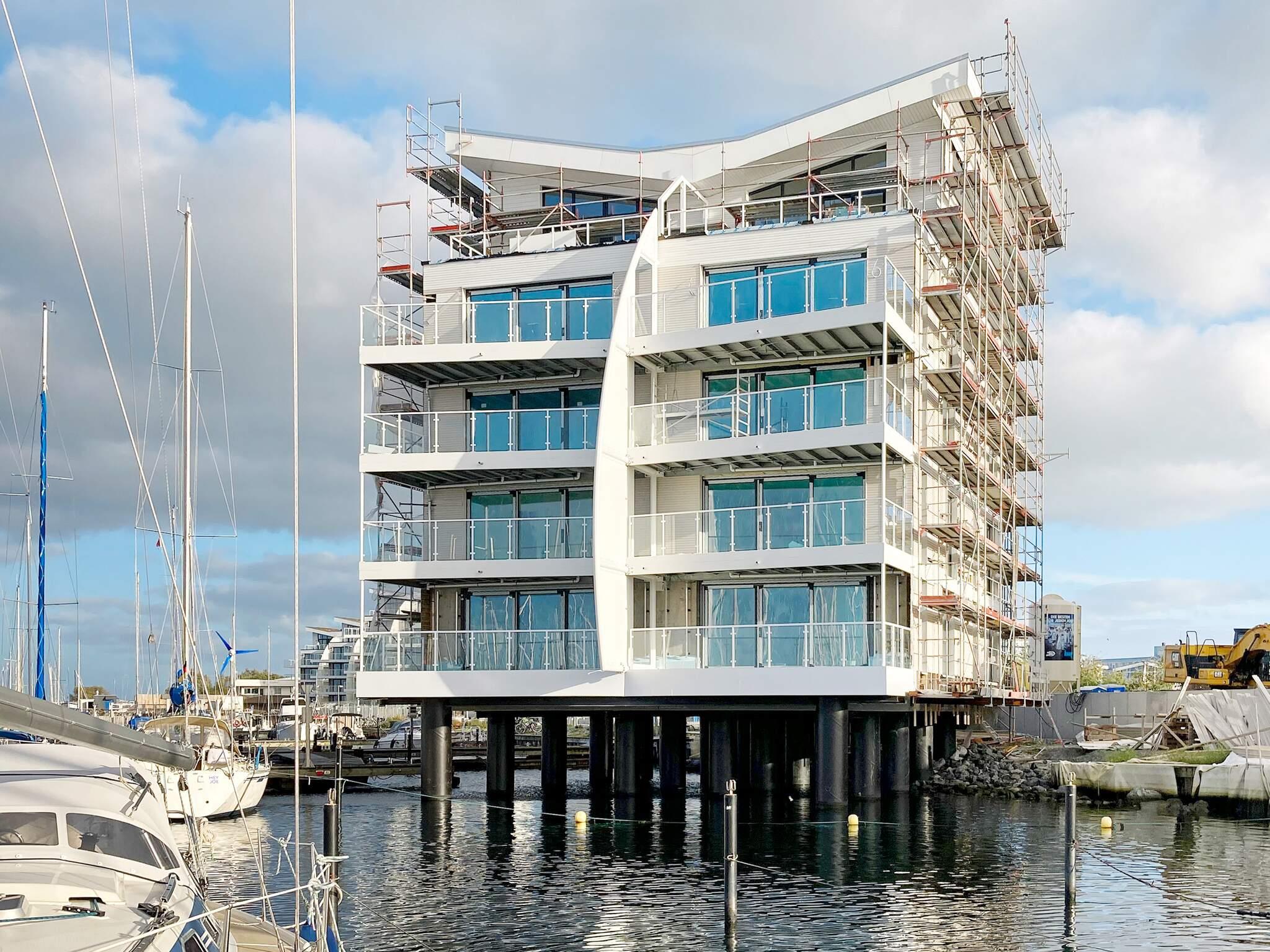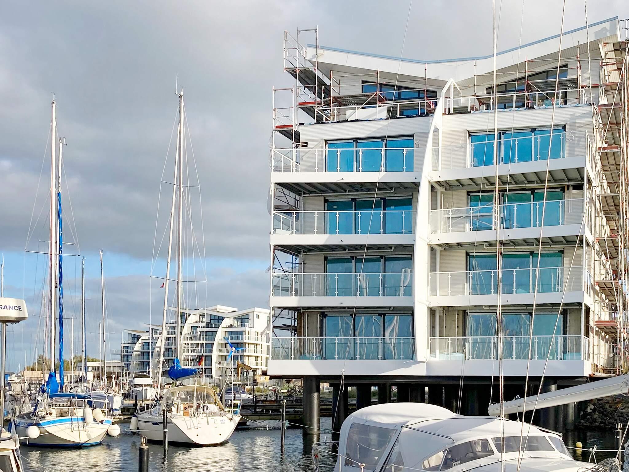 Moderne og komfortabel ferielejlighed direkte ved vandet med en fantastisk panoramaudsigt. Vandvillaerne tilbyder en uforglemmelig udsigt over Østersøen og marinaen fra morgen til aften.