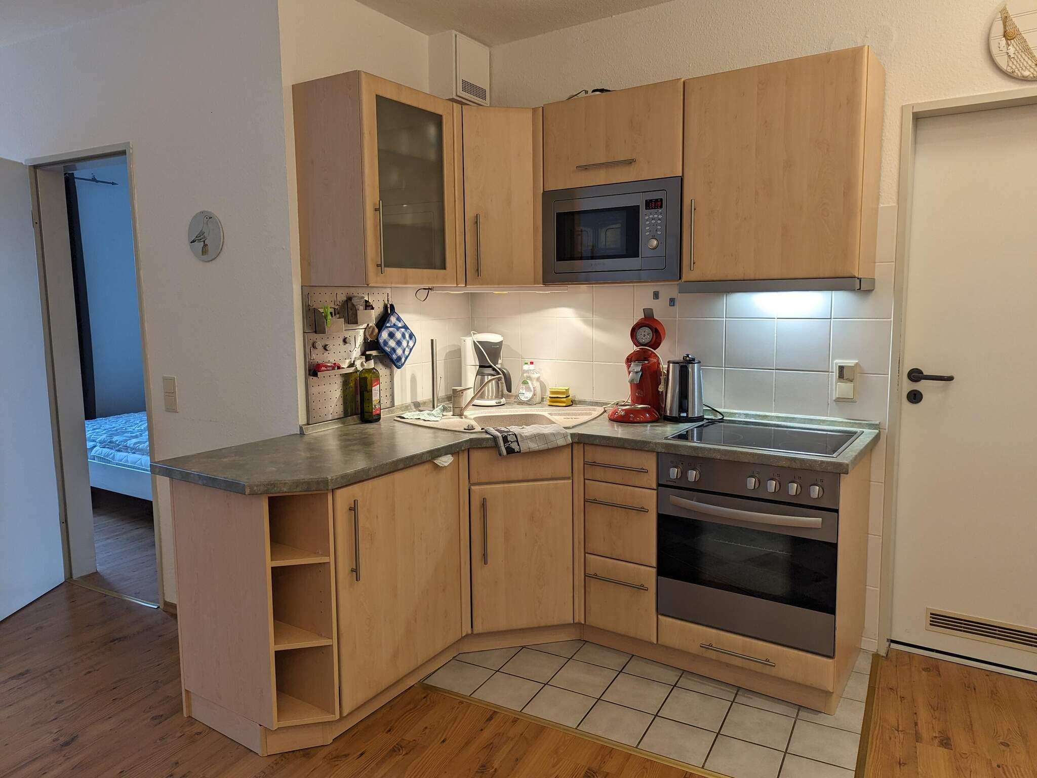 Køkkenet er udstyret med essentielle apparater, herunder komfur og køleskab, så gæsterne kan forberede deres egne måltider. Yderligere faciliteter inkluderer en slutrengøringsservice og provisioner for sengetøj, men gæsterne skal medbringe deres egne håndklæder. Hjemmet lægger vægt på komfort og enkelhed, hvilket giver et perfekt tilflugtssted for dem, der søger både afslapning og en mulighed for at opleve skønheden ved den tyske kystlinje.
