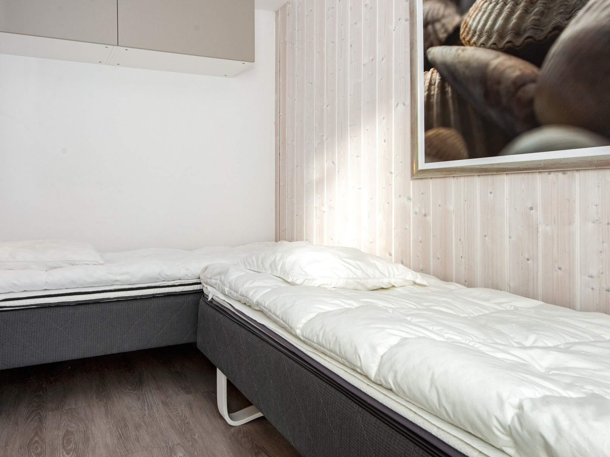 Huset er moderne indrettet og de træbeklædte vægge og skrånende lofter giver huset en lys atmosfære. I stueetagen er der tre soveværelser og et stort badeværelse med bruseniche, gulvvarme og sauna, så I har god mulighed for at slappe af.