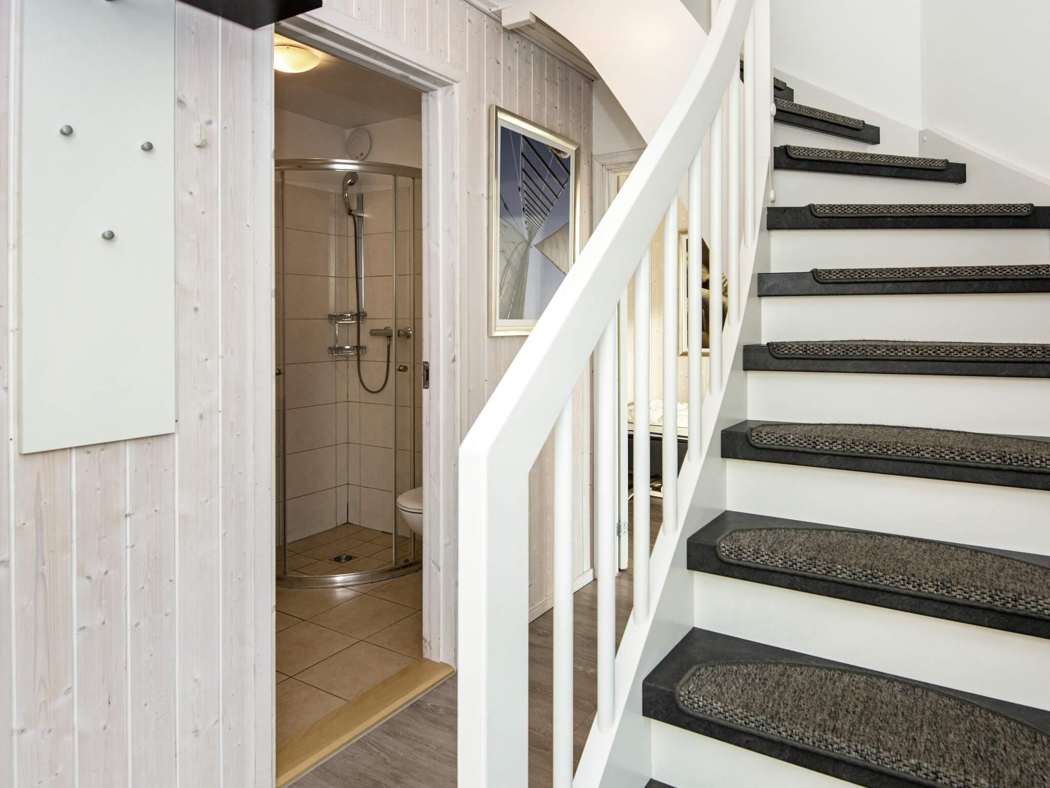 Køkken, spise- og opholdsstue ligger på 1. sal sammen med et badeværelse, hvorfra I har et flot udsyn over området. Herfra er der udgang til den praktisk overdækkede terrasse på 1. etage, den såkaldte loggia, hvor I kan forlænge den skønne sommeraften og nyde panoramaudsigt mod diget og den bagvedliggende strand. Huset er på 1. sal udstyret med en kikkert, så I nøje kan betragte fugle, skibsfart og den pragtfulde udsigt.
