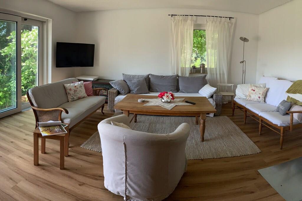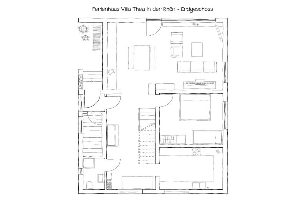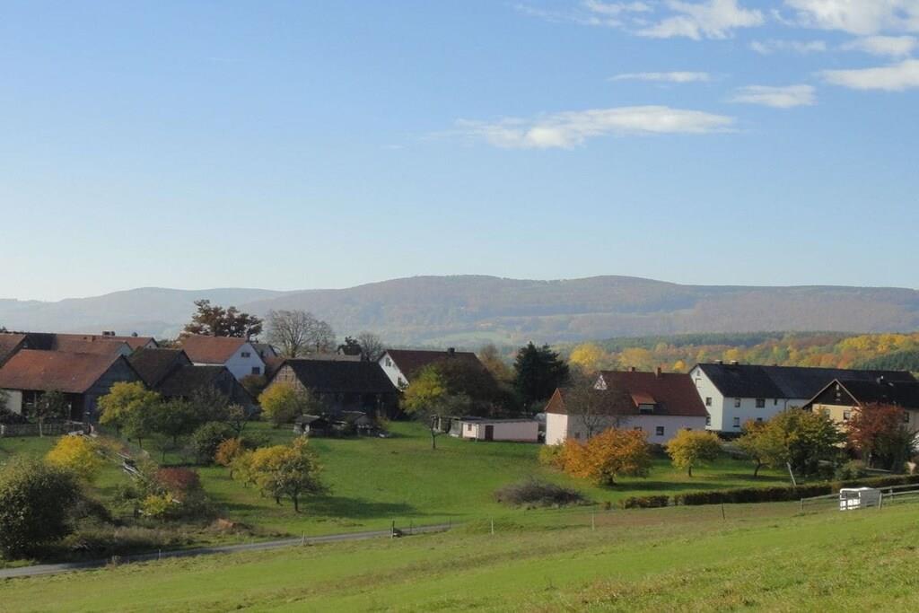Det 4-stjerners feriehuset Villa Thea i Rhön **** er det perfekte tilfluktsstedet for naturelskere og de som søker fred og ro. Den romslige eiendommen (1000m2) og huset, fullstendig renovert i 2023, tilbyr god plass og komfort på 170 kvm, ideelt for opptil 8 og maks. 13 personer. Det spesielle med Villa Thea: beliggenheten! Ekstremt stille og idyllisk i en stor, solrik terrassehage full av blomster, frukt og med en fantastisk utsikt over Rhön. Ikke å glemme: de fantastiske stjerneklare nettene! Det romslige huset tilbyr 4,5 soverom, 2 bad, stue/spisestue, kjøkken og en stor gang i første og andre etasje. Fasilitetene inkluderer gulvvarme, vedovn, piano, smart-TV-er, gassgrill, basseng, stor plen for soling og trampoline.