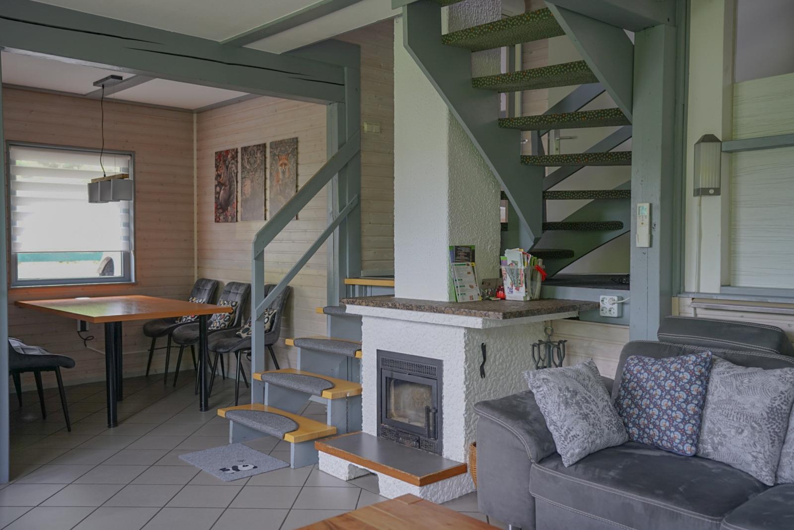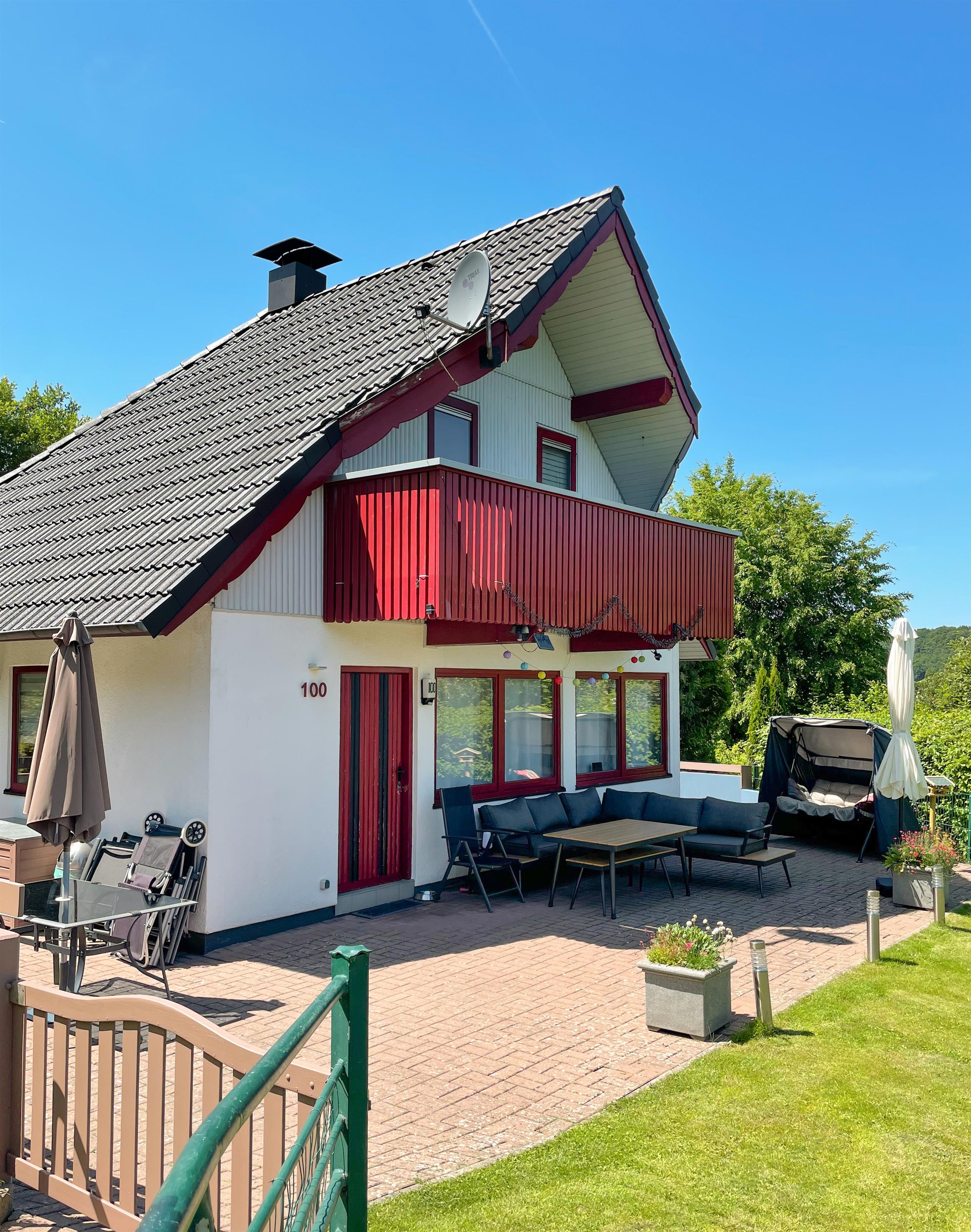 Dieses komfortable Ferienhaus mit Kamin, Balkon und Terrasse vereint Natur, Ruhe und Wohnkomfort – perfekt für einen Urlaub im Ferienhaus in Deutschland.