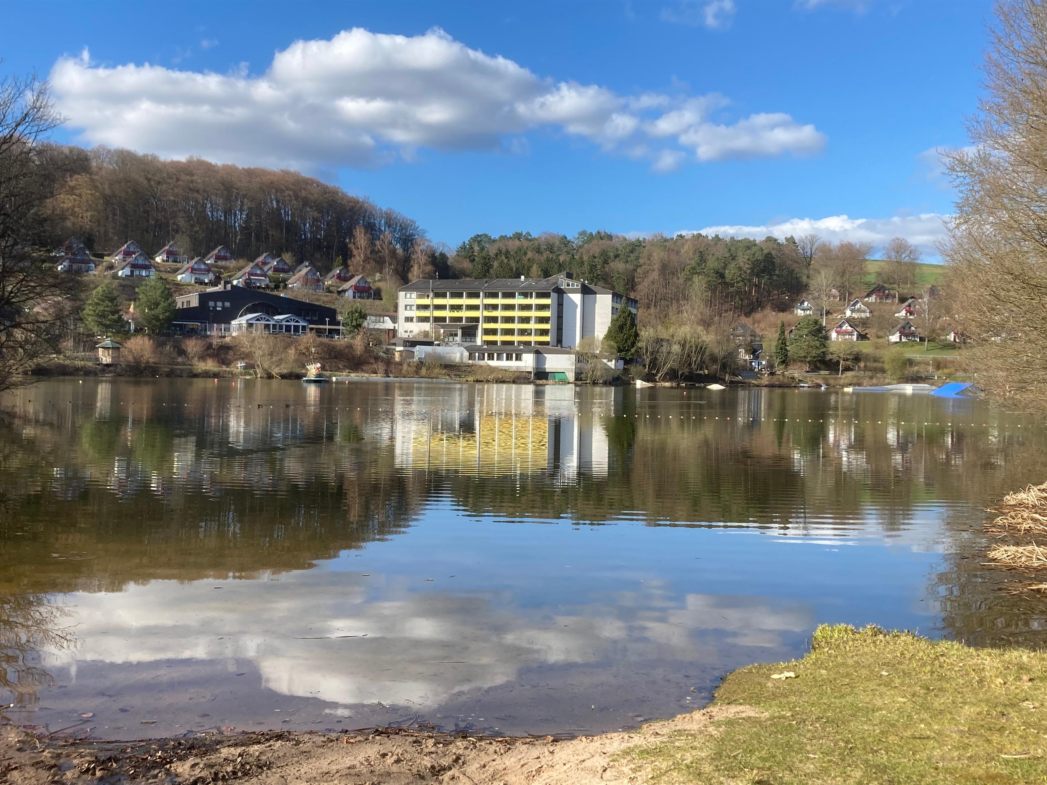 Das Ferienhaus liegt in einem gepflegten Ferienhauspark im Nordhessischen Bergland. Mit seinem fast blickdichten Grundstück, liegt das Haus auf Seeseite. Von hier sind es nur ca. 600 m. bis zum Badestrand.