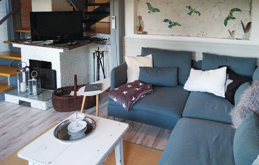 Du kommer inn i huset gjennom en liten gang med god plass til jakker, sko og hundetilbehør. Her finner du også utendørsspill og puter. Du fortsetter inn i den koselige stue-/spisestuen. Spiseplassen har plass til 6 personer - en eksisterende barnestol kan enkelt settes til. I den kjærlig innredede stuen sørger en stor, koselig hjørnesofa for den nødvendige avslapningen. En peis og klimaanlegg sørger for riktig temperatur til enhver tid. SAT-TV, W-LAN, musikk, bøker og brettspill sørger for underholdning.