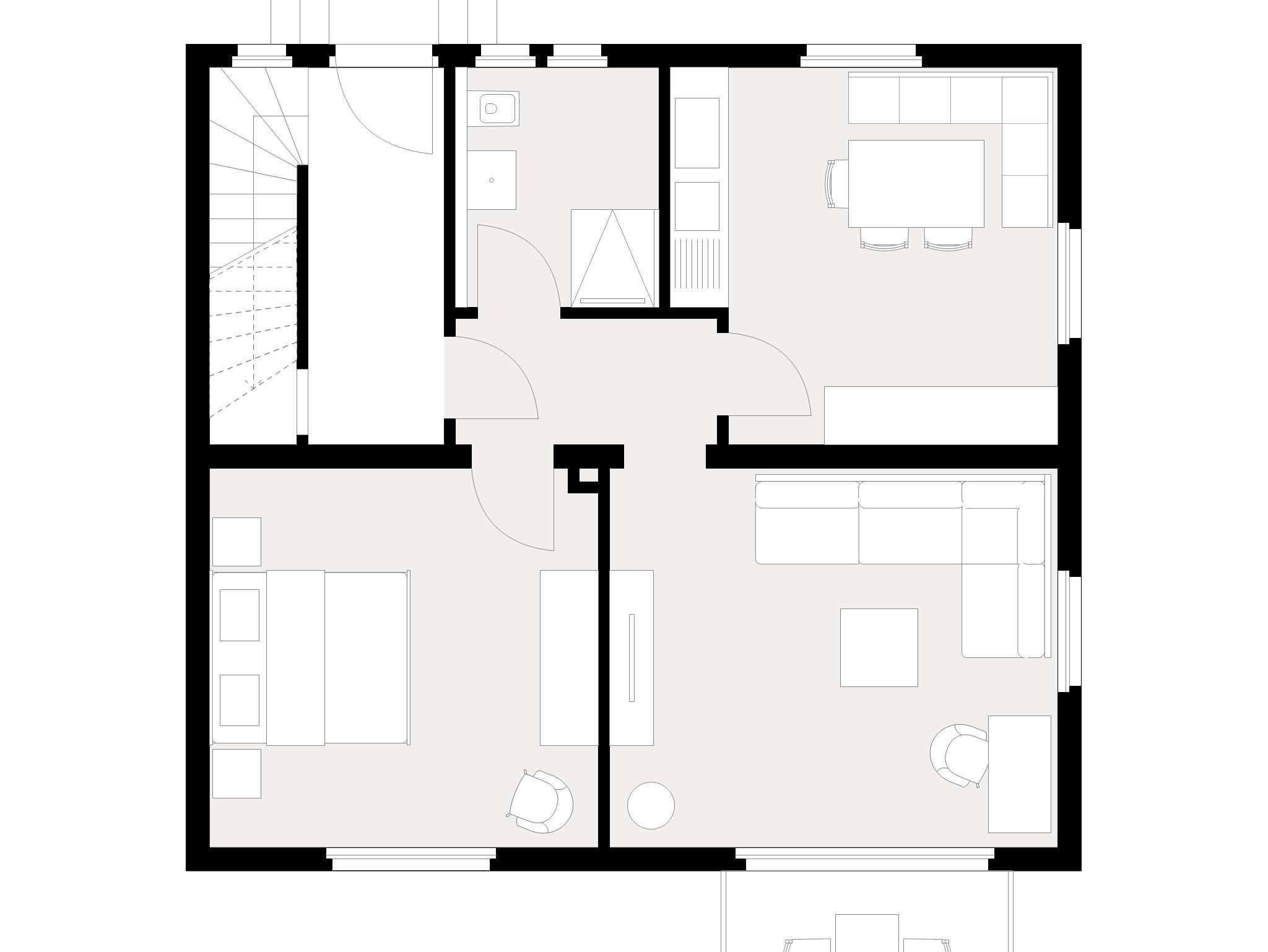 Ferienhaus im Obstgarten, Familienzimmer, Dusche, WC, 2 Schlafräume