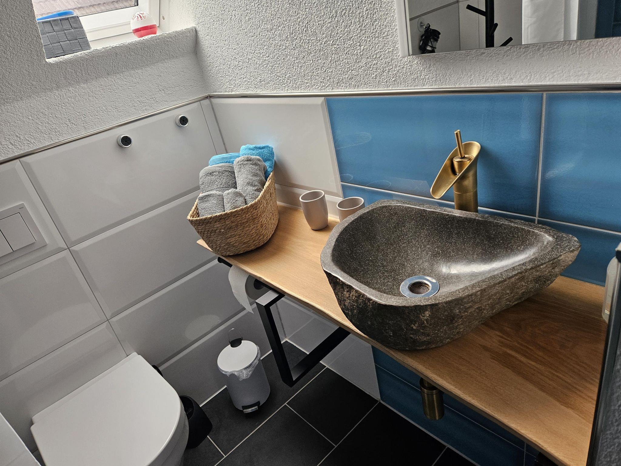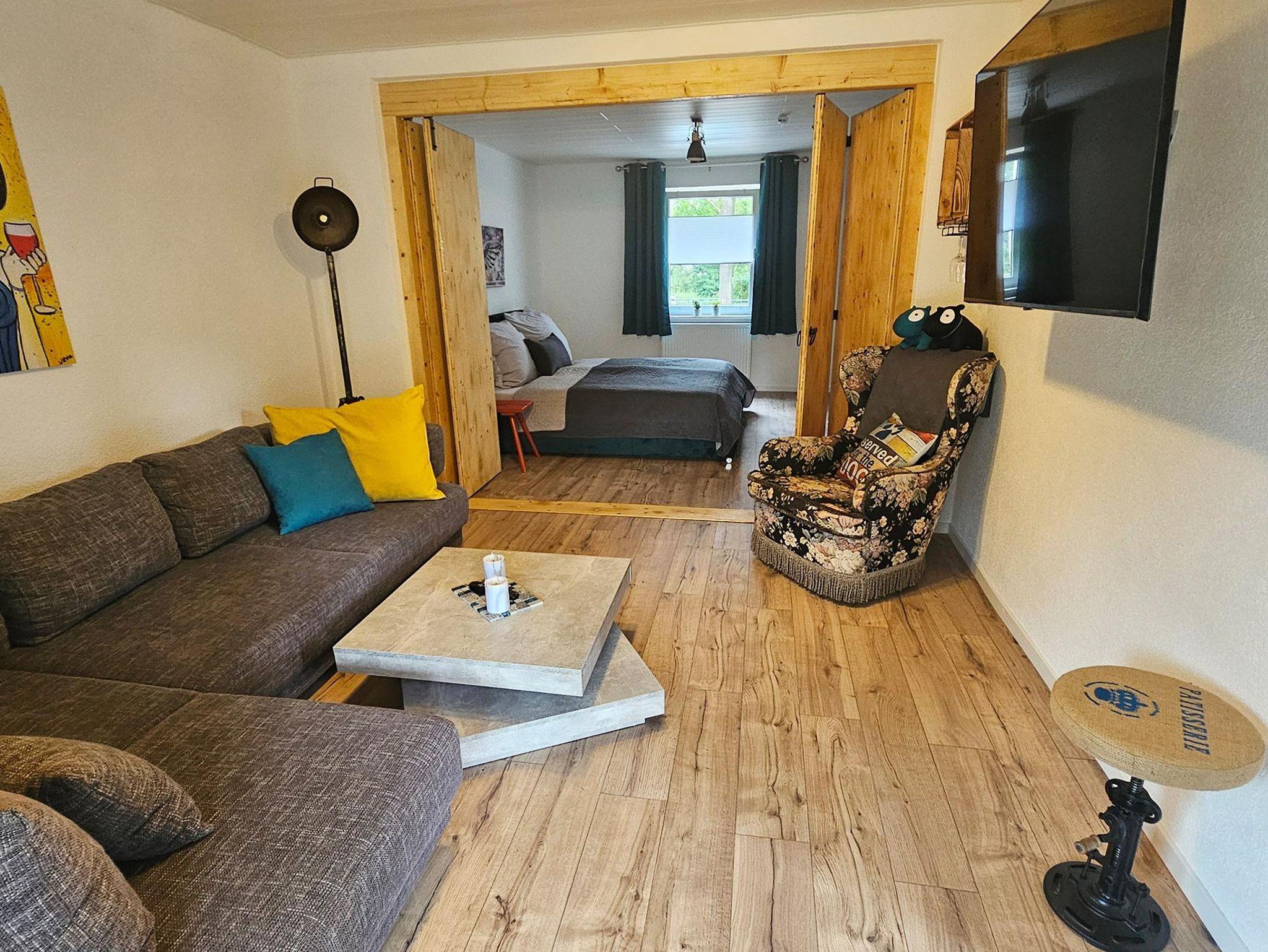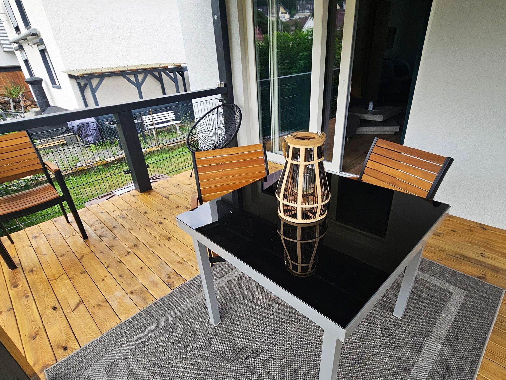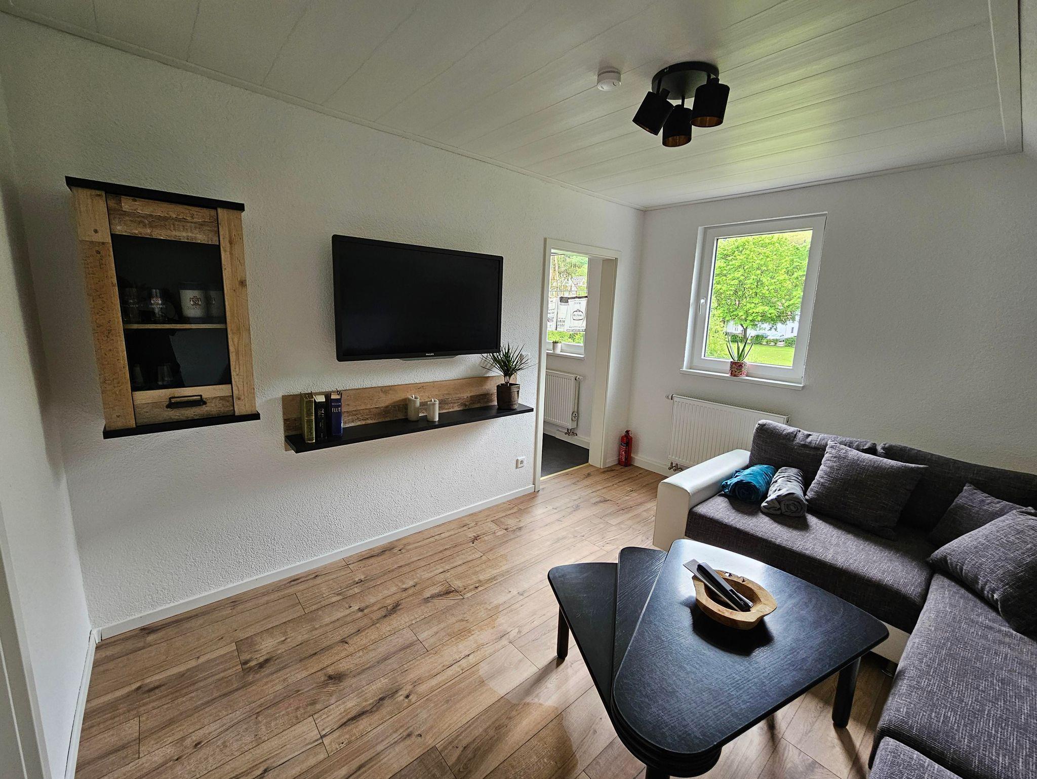 Das ist die komplett neu renovierte Erdgeschosswohnung von insgesamt zwei Wohnungen im Ferienhaus Kirner Kiste.
