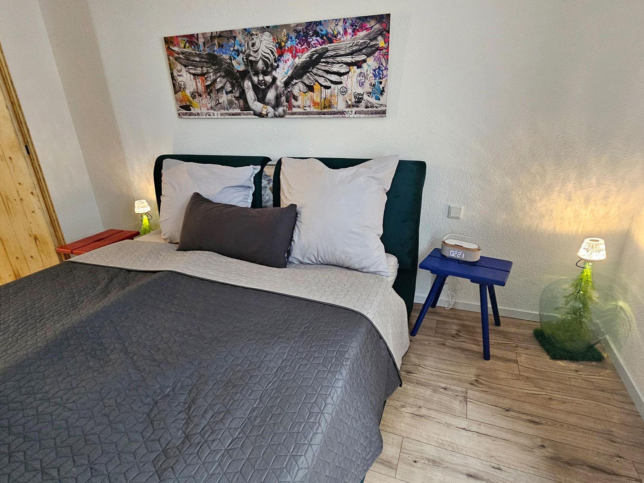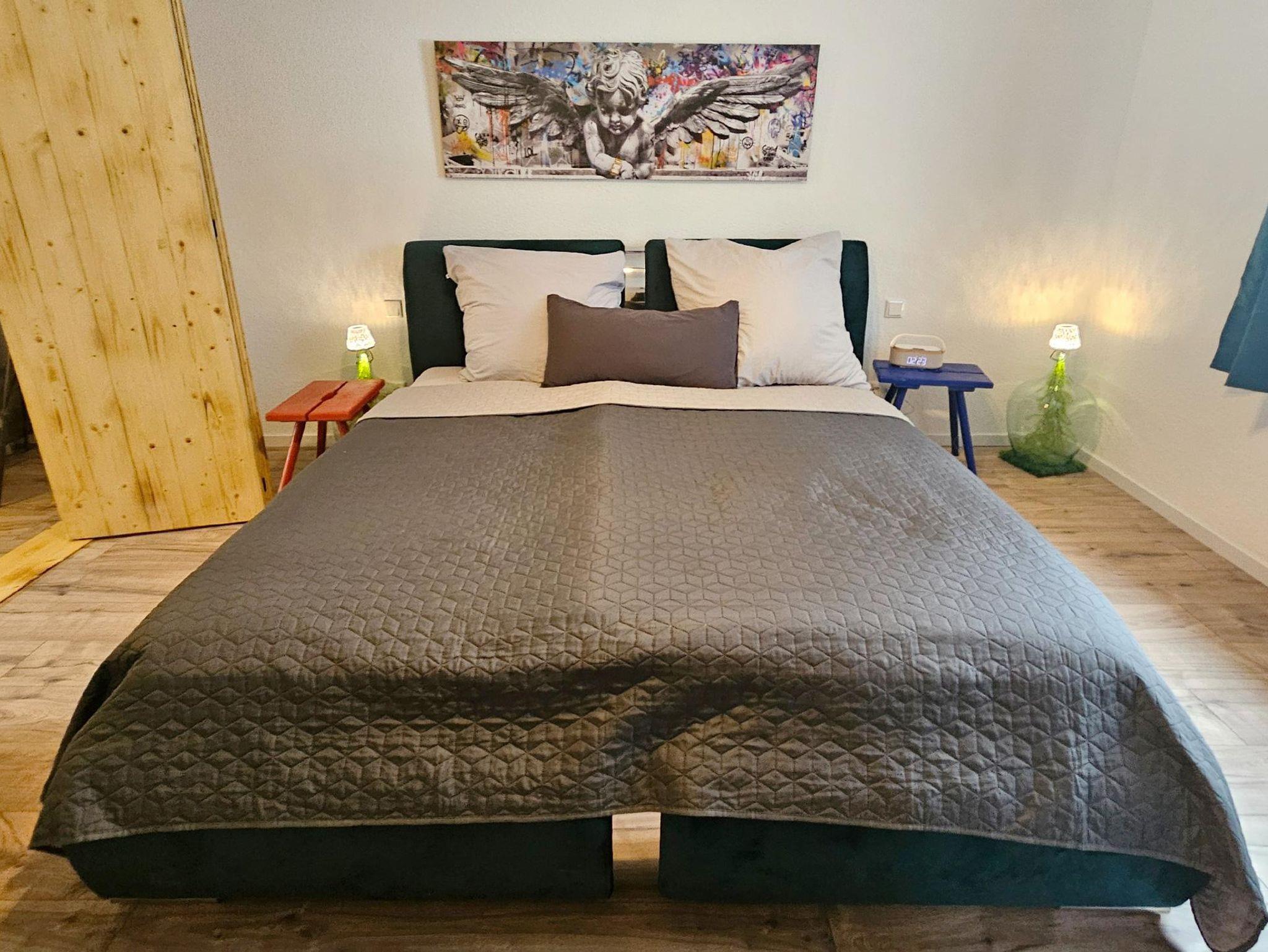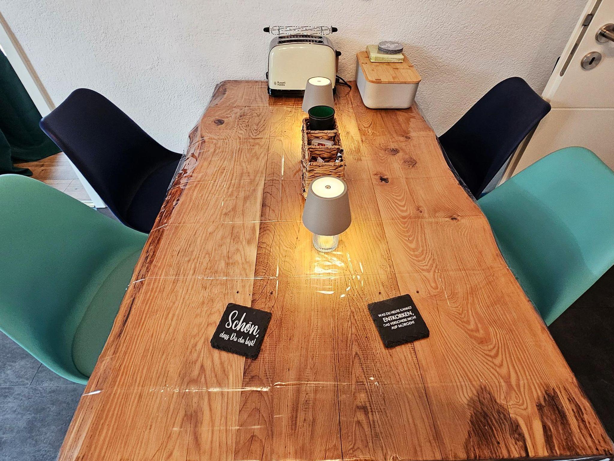Ganz im Stil unserer wunderbaren Nahe-Wein-Gegend haben wir mit einem Mix aus Alt und Neu interessante Einrichtungsakzente gesetzt. Ein schickes, kleines Bad mit Dusche, die moderne Küchenzeile mit Backofen und viele andere komfortable Annehmlichkeiten sollen Dir eine unvergessliche Zeit im Nahe-Schörlsche bereiten. Das Nahe-Schörlsche ist nicht perfekt, aber ganz Nahe dran.
