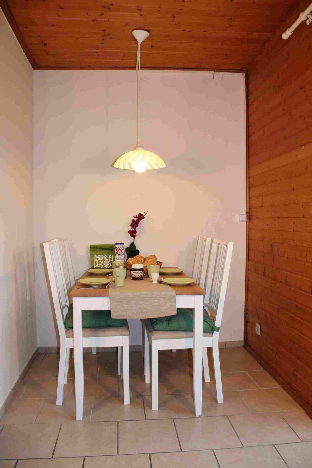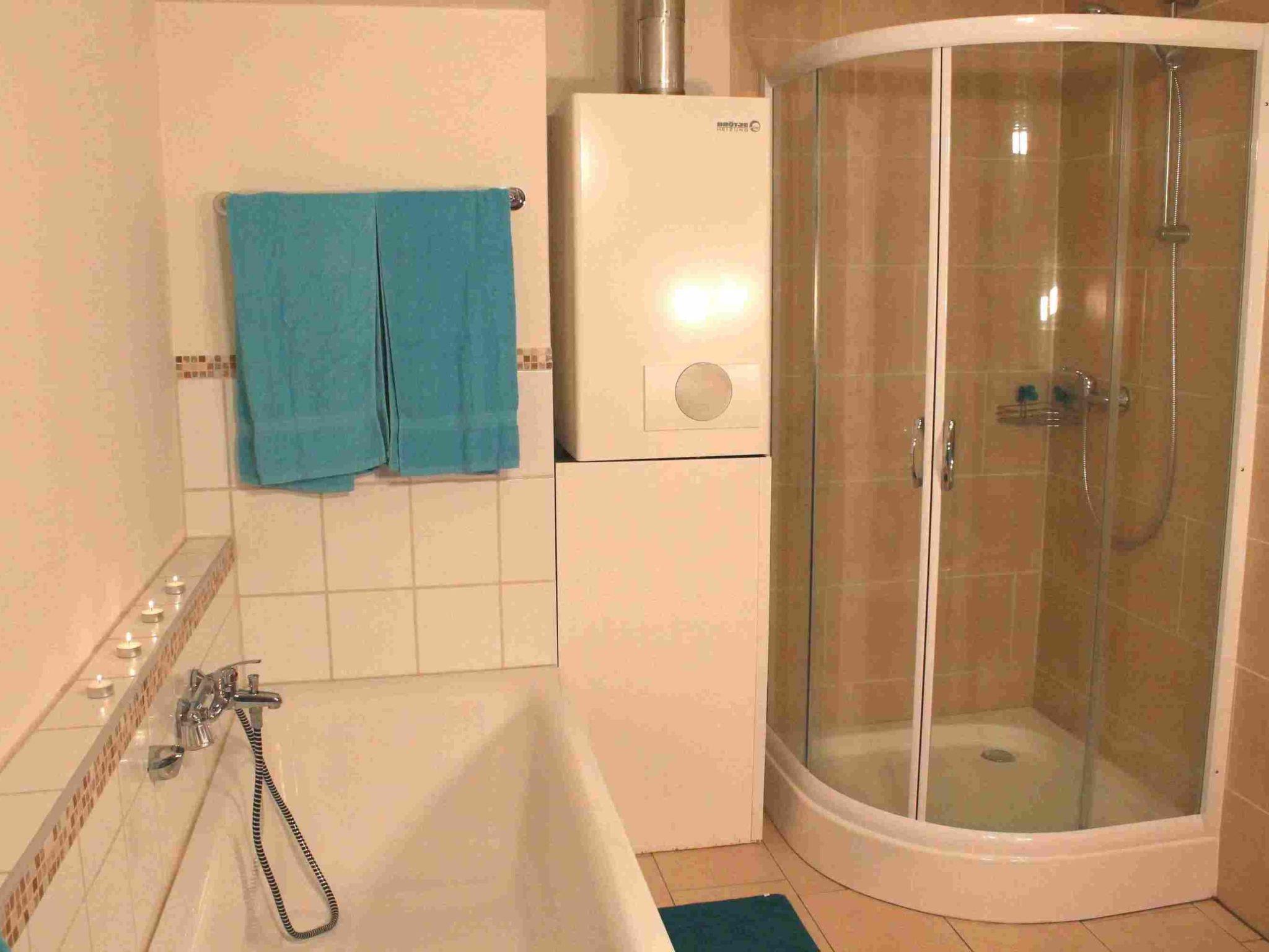 The so-called "customs house" from the 1960s has been lovingly renovated and brought up to date. The interior creates a cosy atmosphere of rustic comfort and modern elements. The large garden and the covered terrace have been retained. The holiday accommodation extends over a living space of 70 m² and is divided into a bedroom, a large living room, a separate kitchen with dining area and a daylight bathroom. The heart of the flat is the stately living room, which has a bright laminate floor and a wonderful wood-burning stove that spreads cosiness in autumn, on cool spring days and of course in winter. Independently of this, central heating also keeps the house warm. Relax on the corner sofa after a day out, while the large flat-screen TV, a Blu-Ray player with a small selection of films and a hi-fi system provide entertainment. The bedroom sleeps two people in a double bed measuring 1.80 x 2.00 metres and has enough space for your clothes in a wardrobe and chest of drawers. The pine design is in keeping with the ambience of the holiday home. Here, too, you have a modern, light-coloured laminate floor. There is another wood-burning stove in the kitchen. Come in after a walk in the still cool spring or a golden autumn day, enjoy a hot soup and the firelight from the stove - the perfect welcome to your temporary home. The tiled kitchen allows for extensive self-catering with a four-zone ceramic hob with oven, fridge, dishwasher and the usual appliances such as a coffee machine, kettle and toaster. In the spacious bathroom, you can choose between a modern shower cubicle and a bathtub. You are welcome to leave your hairdryer at home, there is already one there. The use of WLAN is included.