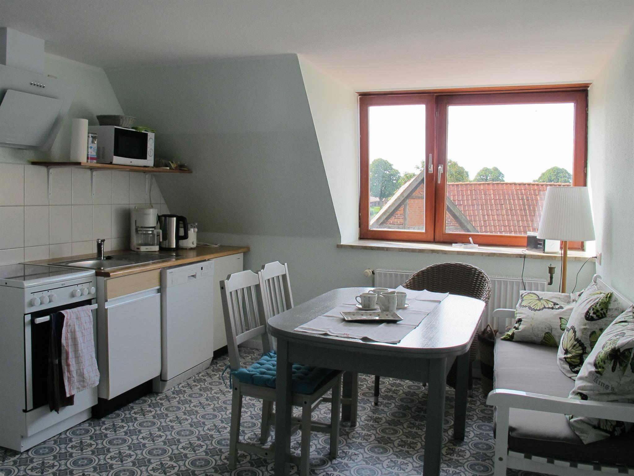 Großzügige, kinderfreundliche gut ausgestattete Ferienwohnung im Obergeschoss des Bauernhofes, in der Nähe des Dielencafes. Gartenterrasse, Sitzmöglichkeiten und der Naturbeobachtungsturm am Hofsee laden zum Entspannen und Beobachten der Natur- und Vogelwelt ein. Zentrale Lage für Wanderungen und Fahrradtouren in der Schaalseeregion.