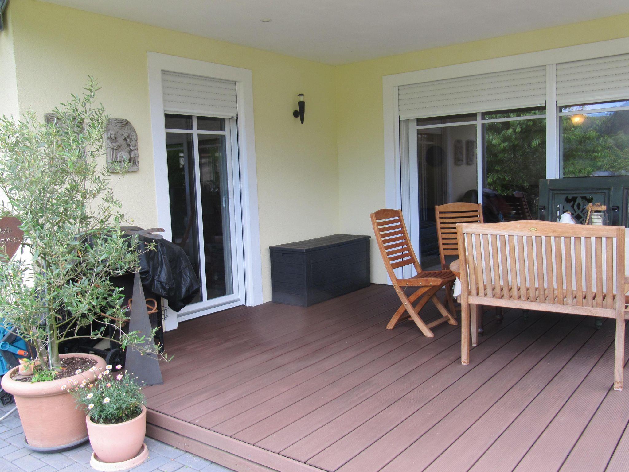 Neue, liebevoll eingerichtete Ferienwohnung (80 m² - Nichtraucher). Küche mit Backofen, Geschirrspüler, Mikrowelle, Kühlgefrierschrank, Wohnzimmer mit SAT-TV, DVD-Player, Bad mit Dusche/WC, Waschmaschine und Trockner. Auf der überdachten Terrasse mit Garten erleben Sie den Sonnenuntergang mit Blick auf die Weinberge.