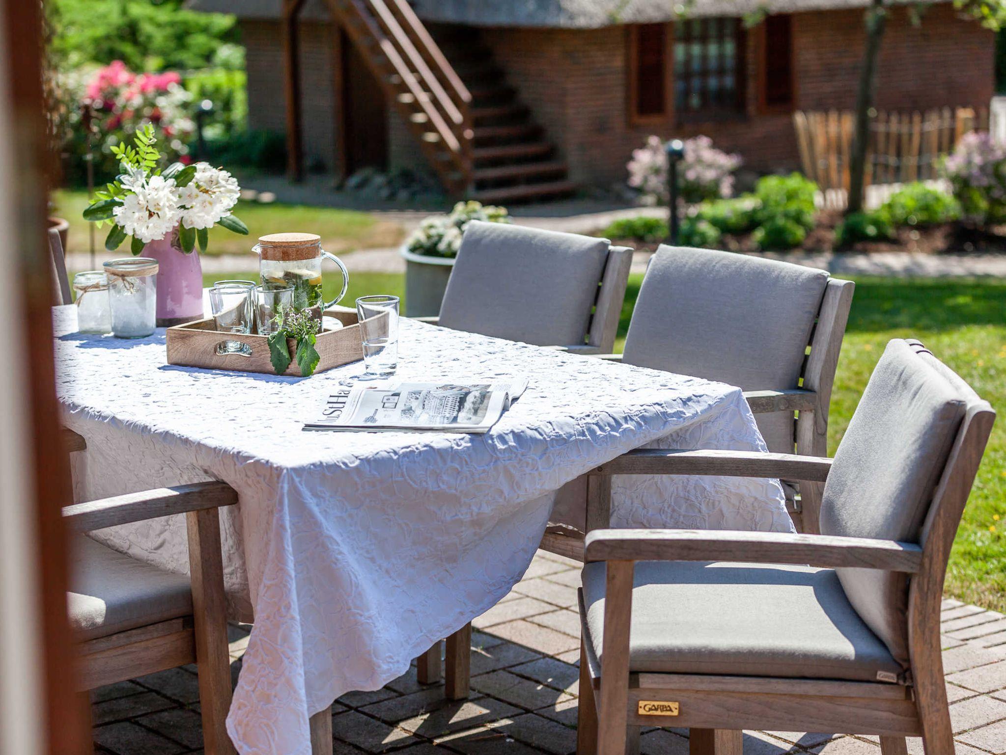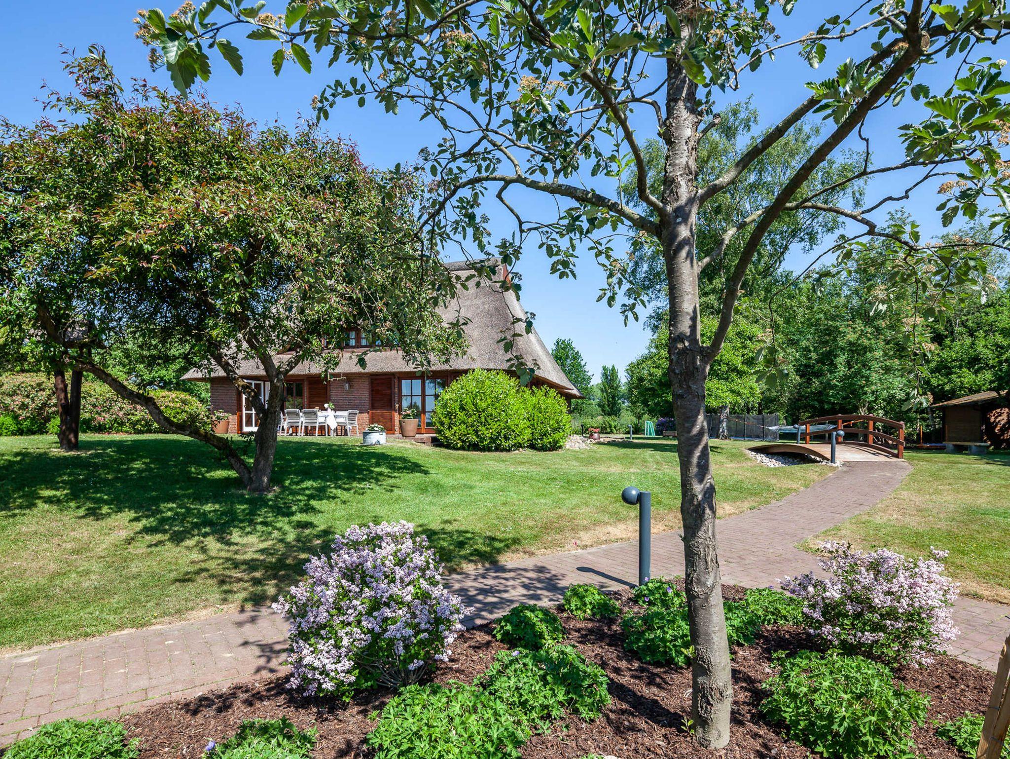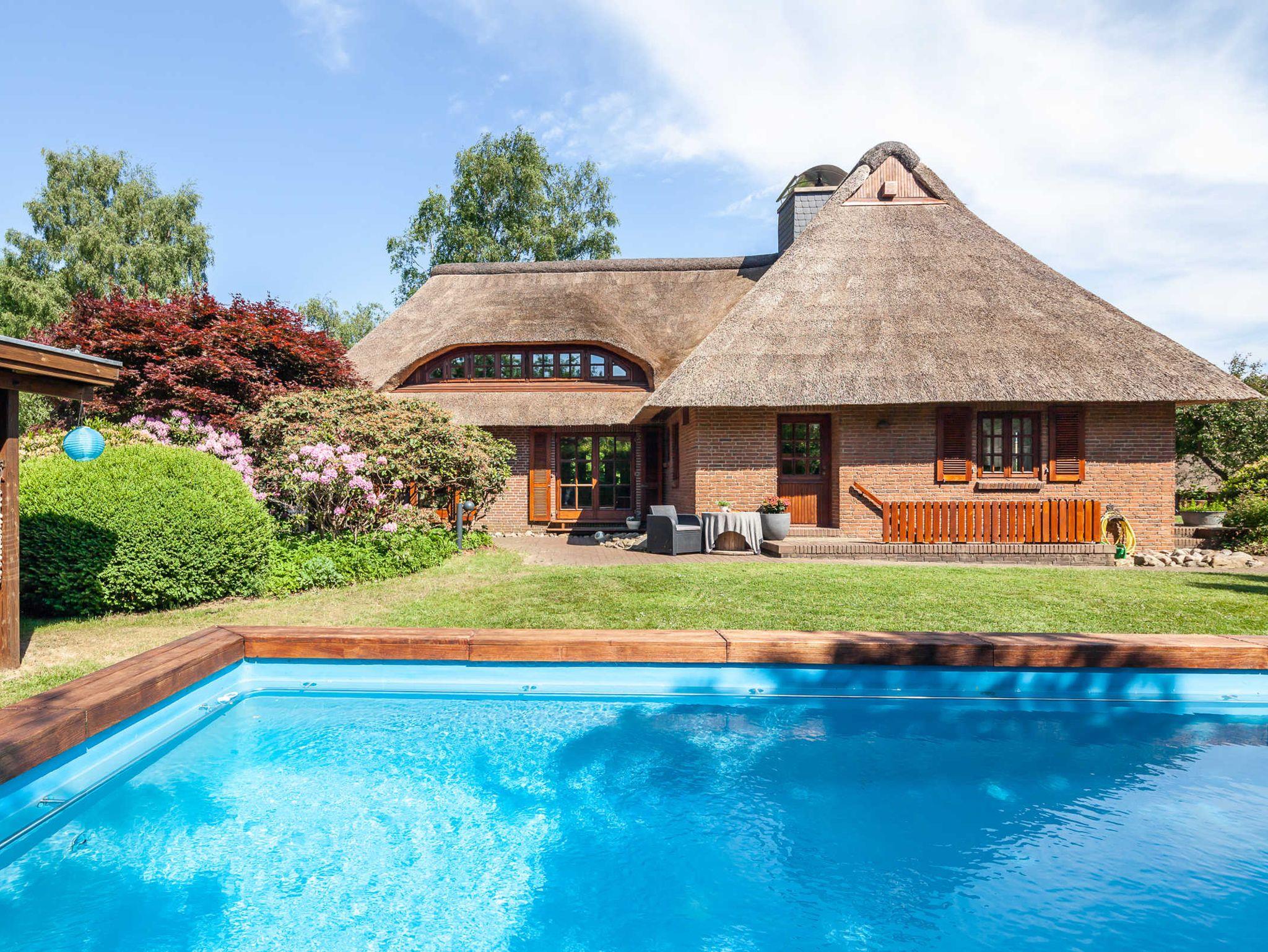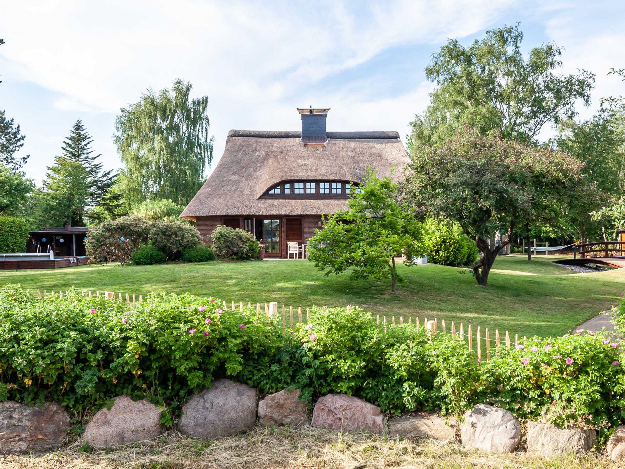 Der Garten rund um das Ferienhaus ist 2500 qm groß, komplett eingezäunt und bietet mit dem leuchtend blauen großen Pool, der überdachten Poolbar und der gemütlichen Grillecke einen einmalig schönen Teil des Außenbereiches. Der weitläufige Garten hat aber noch viele weitere Ecken zum Verstecken, zum Spielen, Toben und Freude haben. Auf der Spielwiese gibt es Fußballtore und Balancierbalken für die kleinen und die großen Gäste, dazu noch jede Menge weiteres tolles Outdoor Spielzeug. Bis zu 2 tierische Freunde (Hunde) sind im Urlaub im Ferienhaus REETselig herzlich willkommen.