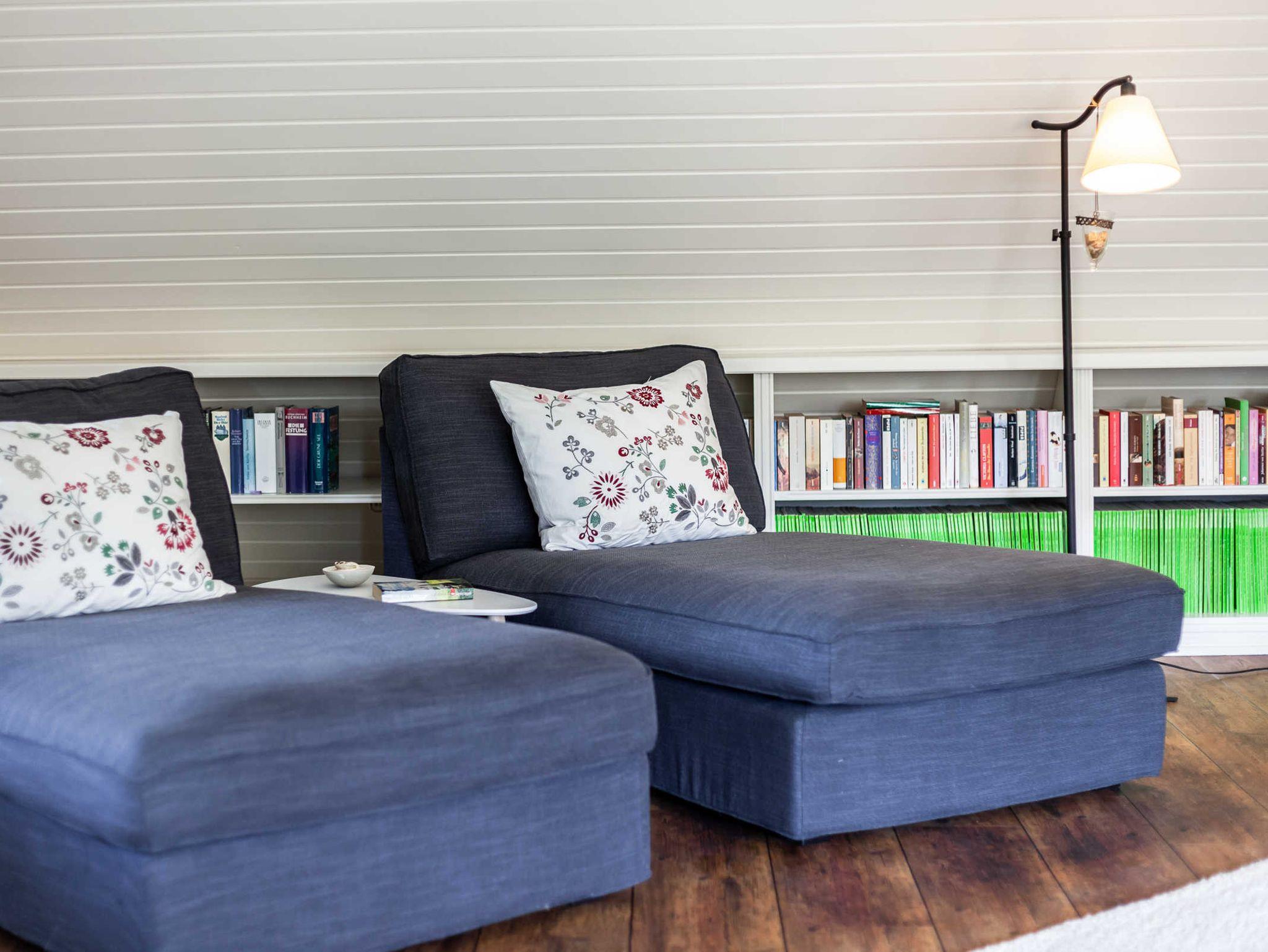 Der goße Freizeitraum verfügt über zwei Loungesofas, ein weiteres Sofa, einen Fitnessstepper, TV, DVD Player und jede Menge Auswahl an Spielen, Urlaubslektüre und netten Filmen uind ist der perfekte Ort, wenn sich die Sonne einmal hinter den Wolken versteckt.