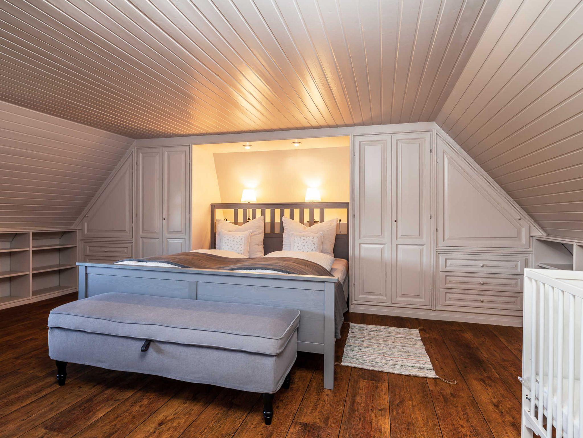 Im Erdgeschoss befinden sich zwei Schlafzimmer. Schlafzimmer 1 mit 2 Einzelbetten und Kleiderkommode, Schlafzimmer 2 mit Doppelbett und großem Kleiderschrank. Bad mit Dusche und WC.