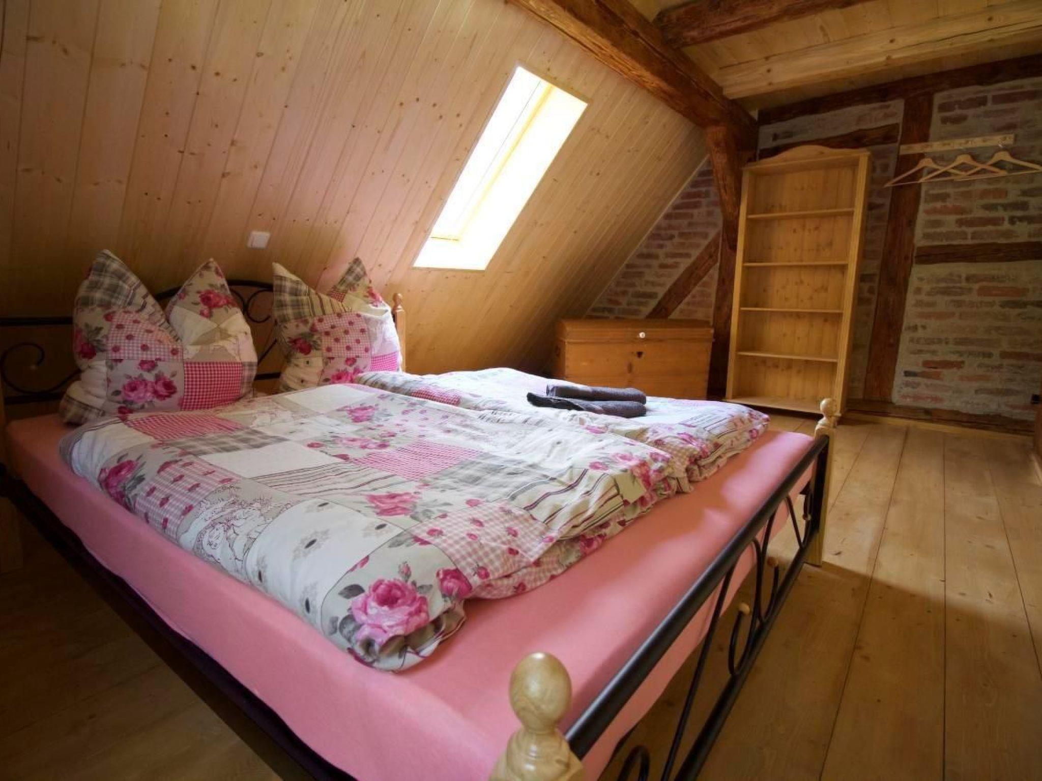 The holiday flat has a living/dining room (wood-burning stove), kitchen, bathroom with shower/WC on the ground floor. There are 2 separate bedrooms on the upper floor and an open sleeping loft in the attic.