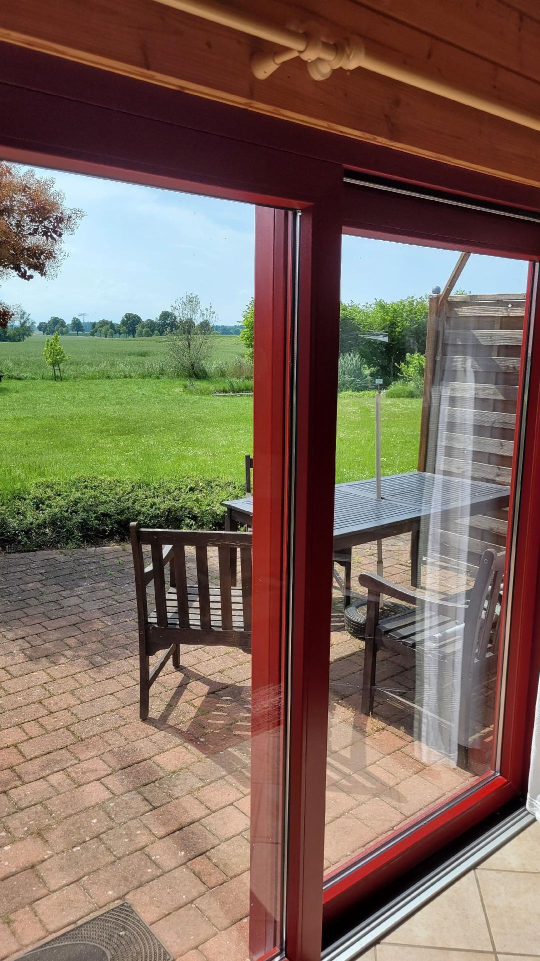 Holiday flat no. 5 is located in a detached wooden house at the beginning of the village. In the house you will find the living room, the kitchen with dining area and the bathroom with shower/WC and washbasin. A balcony door leads to the outside terrace. The living room, kitchen and dining area are connected as open-plan areas. The living area is equipped with a satellite TV, CD player, radio and a cosy couch. The two bedrooms are located at the rear. The first bedroom has a double bed 140 cm wide, the second has two single beds, each 80 cm wide. The terrace is equipped with a parasol and various items of garden furniture.