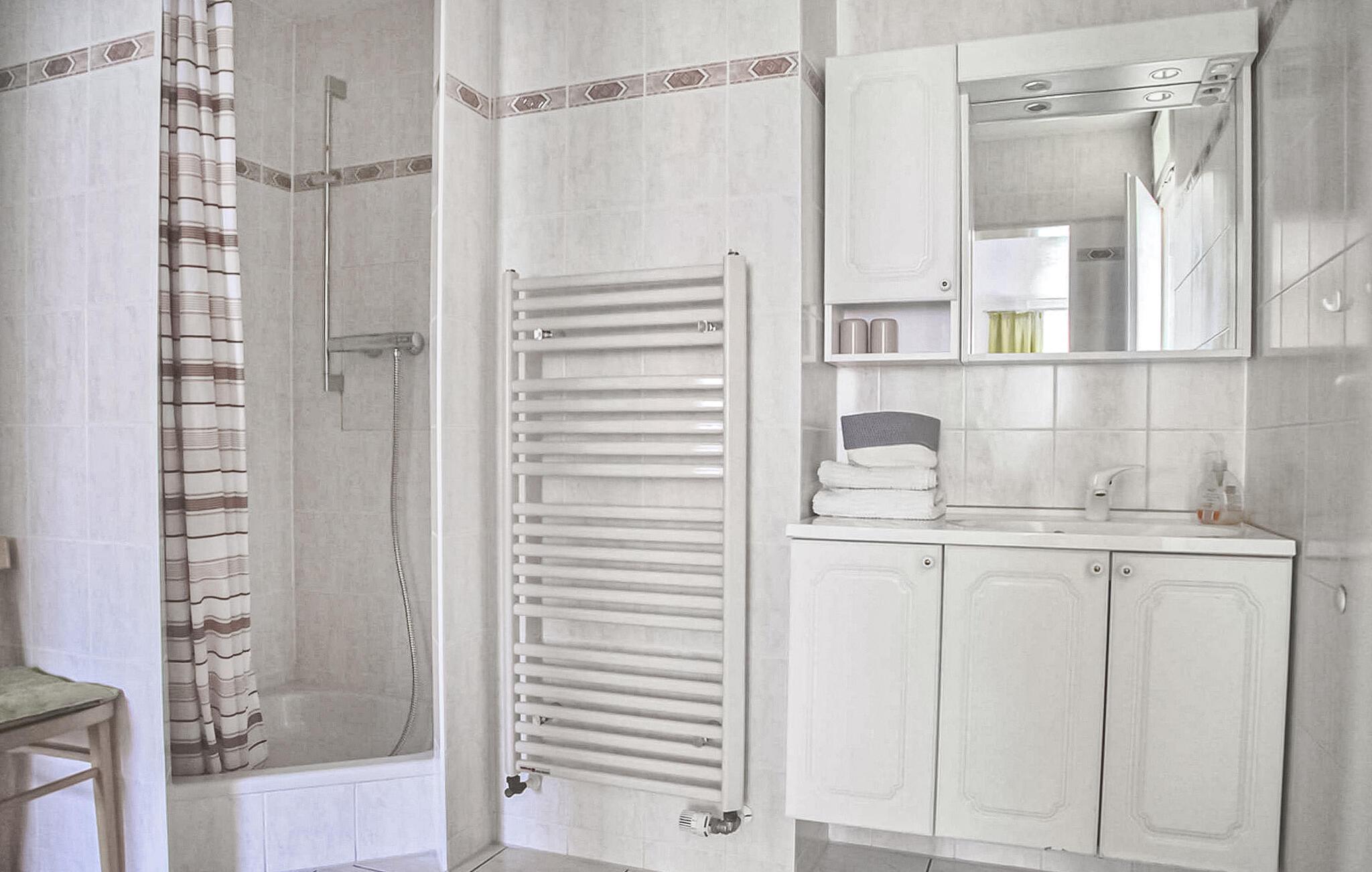 Denne ferieleiligheten ligger i første etasje. Den har stue (sovesofa, polstrede møbler, TV, radio), soverom (dobbeltseng), kjøkken med spiseplass og kjøkkenkrok, dusj, WC, sentralvarme og terrasse.