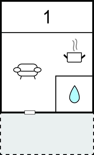 Tomannsboligene er ca. 40 m² store og har plass til 2 til 3 personer. Det er stue (polstrede møbler med ekstra seng, flatskjerm-TV, spiseplass, radio), åpen kjøkkenløsning (elektrisk komfyr, kjøleskap med frysedel, mikrobølgeovn, diverse kjøkkenutstyr), soverom (2 polstrede solsenger) og bad med dusj/WC. Huset varmes opp med sentralvarme. For små barn kan det stilles barnestol og barneseng til disposisjon. Det er også en liten utendørs lekeplass med huske og sklie, samt en møblert terrasse, grill, solsenger, et sykkel-/utstyrsskur (maks. 3 sykler) og parkeringsplasser for hver boenhet.