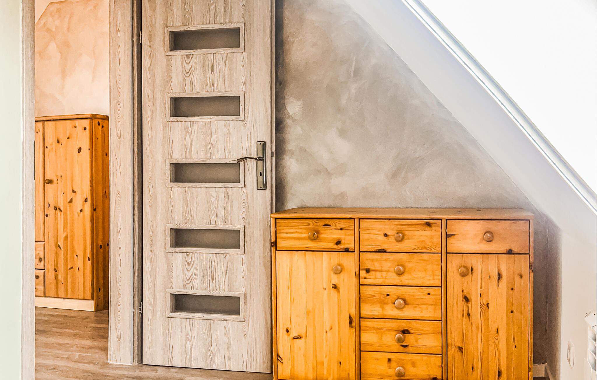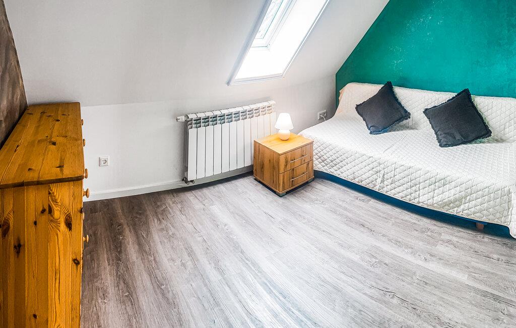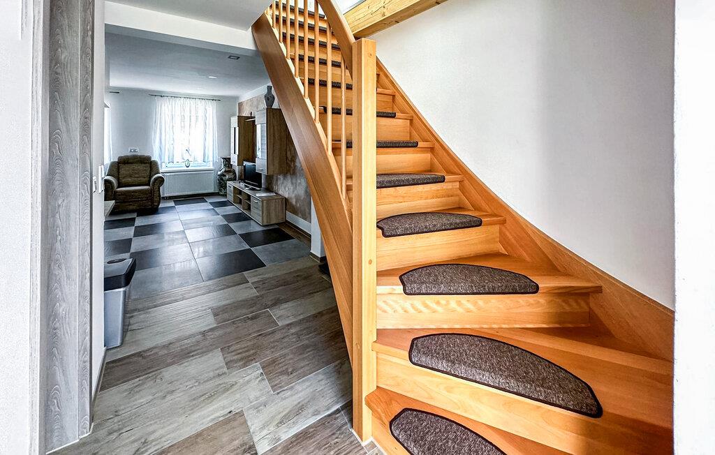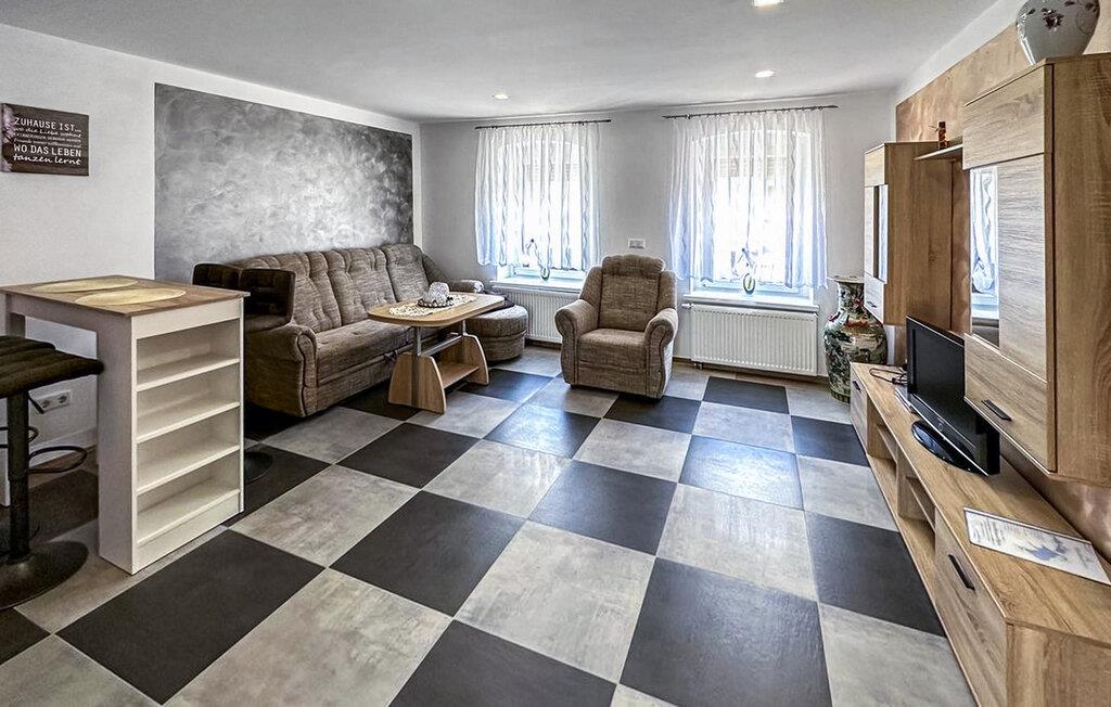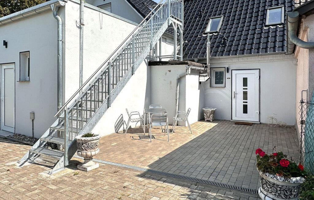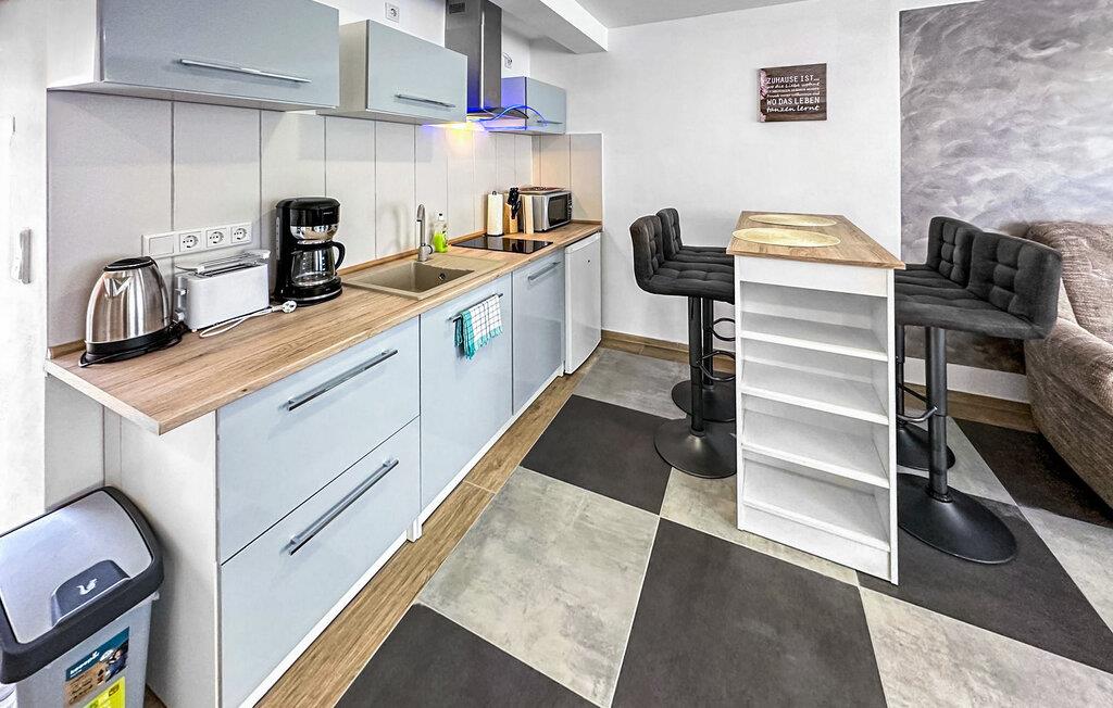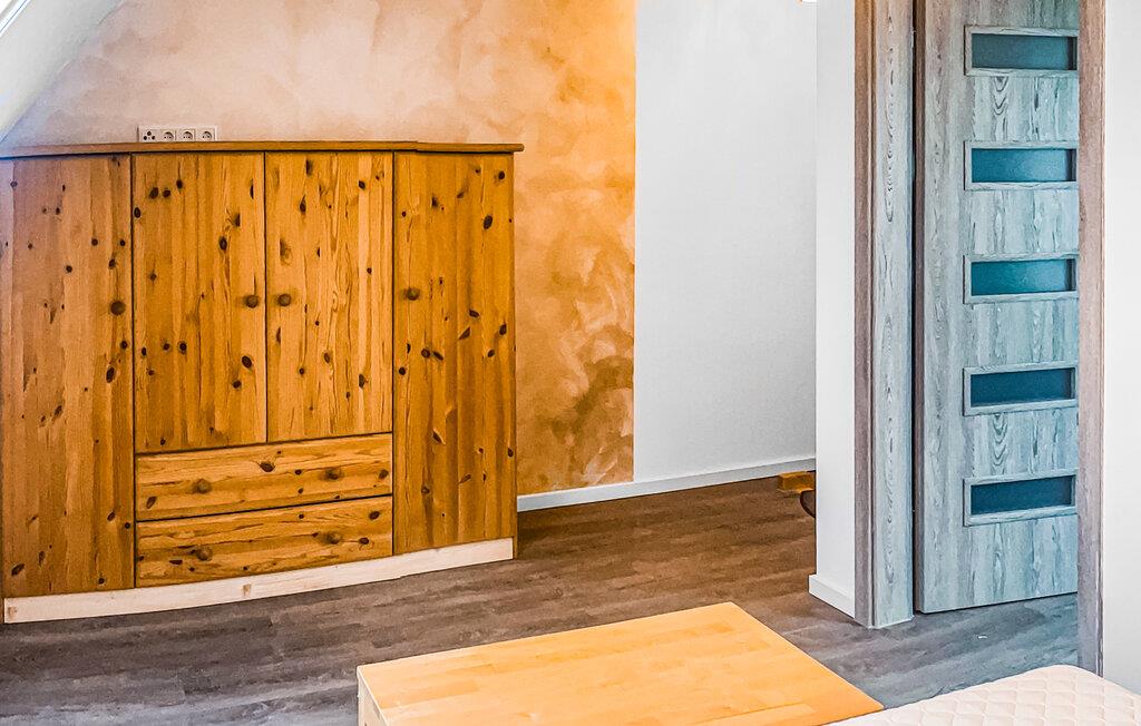 Den ca. 52 m² store ferieleiligheten for 2 til maks. 4 personer ligger separat i første og andre etasje i et feriehus med sentral beliggenhet (ved hovedvei 192). Müritz med badestrand, havn, anløpsbrygge for passasjerbåter og Müritz sykkelsti ligger ca. 500 meter unna. Restauranter ligger innenfor en radius på noen hundre meter, og leiligheten ble fullstendig modernisert og ommøblert i 2023. I første etasje er det en stue (polstrede møbler med sovefunksjon, flatskjerm-TV, spisebord, radio), en åpen kjøkkenkrok (elektrisk kokeplate, kjøleskap, mikrobølgeovn, diverse kjøkkenutstyr) og et bad med dusj/WC. I øverste etasje er det et åpent soveområde (dobbeltseng) og et annet soverom (sovesofa). Leiligheten varmes opp med sentralvarme. For små barn kan det tilbys barnestol og barneseng. W-LAN er også tilgjengelig, i tillegg til en møblert sittegruppe i inngangspartiet, grillfasiliteter, oppbevaringsplass for sykler og en parkeringsplass.