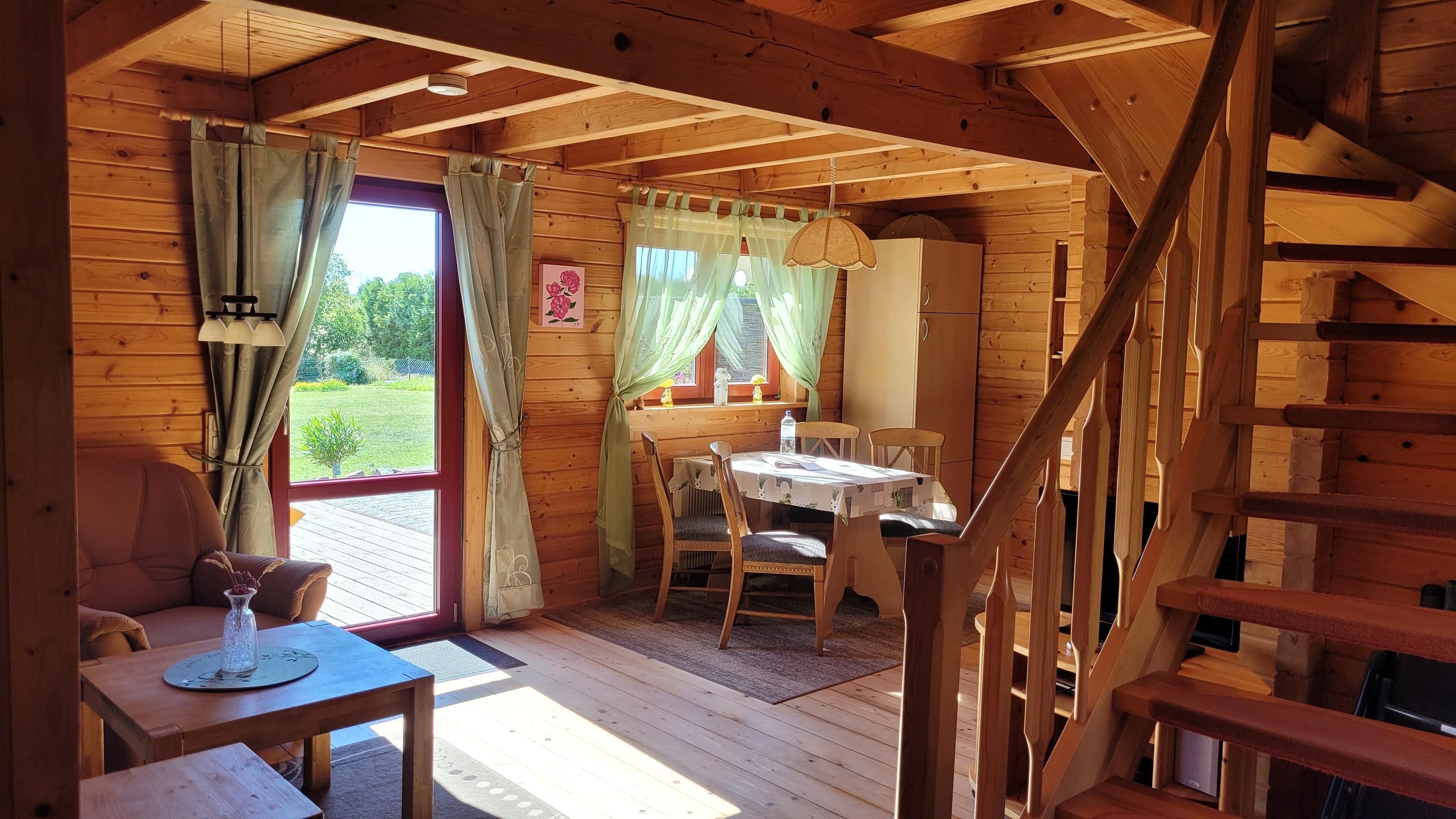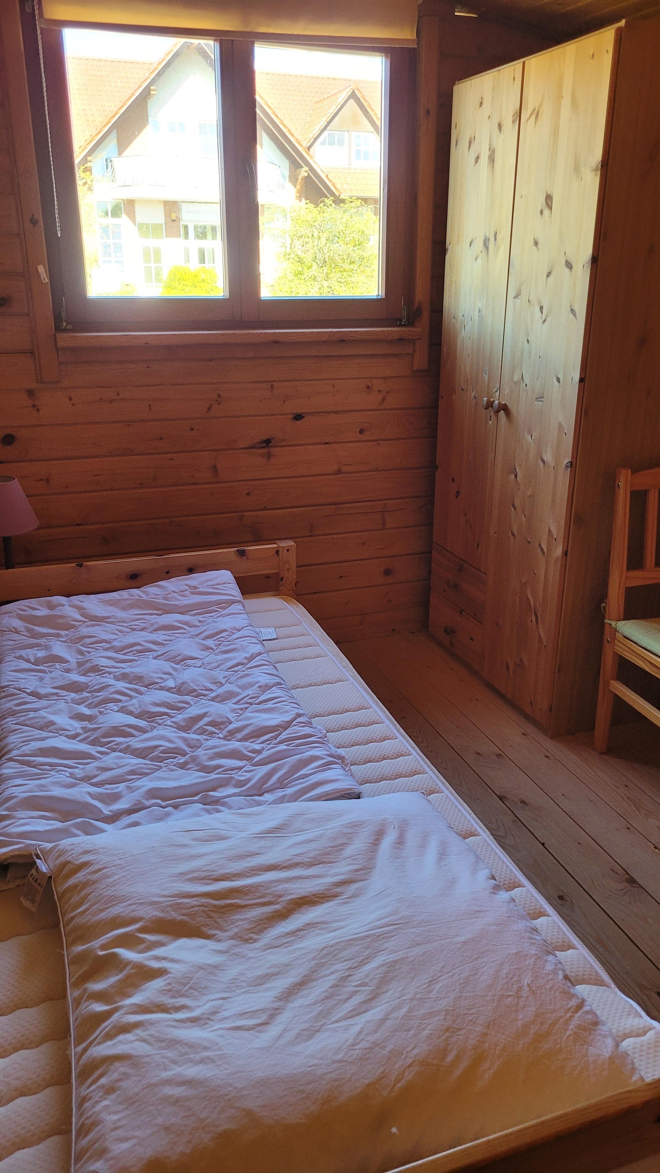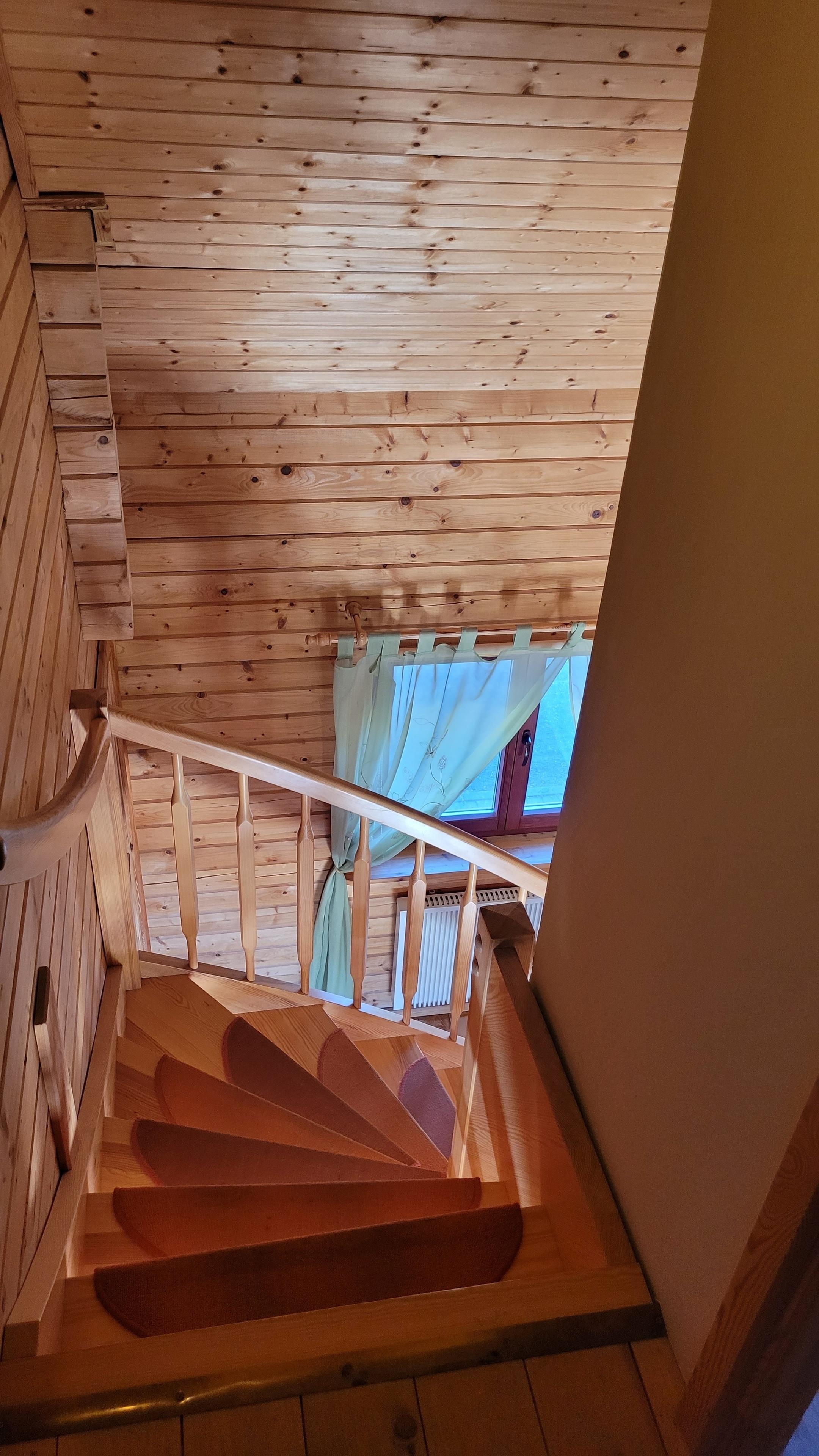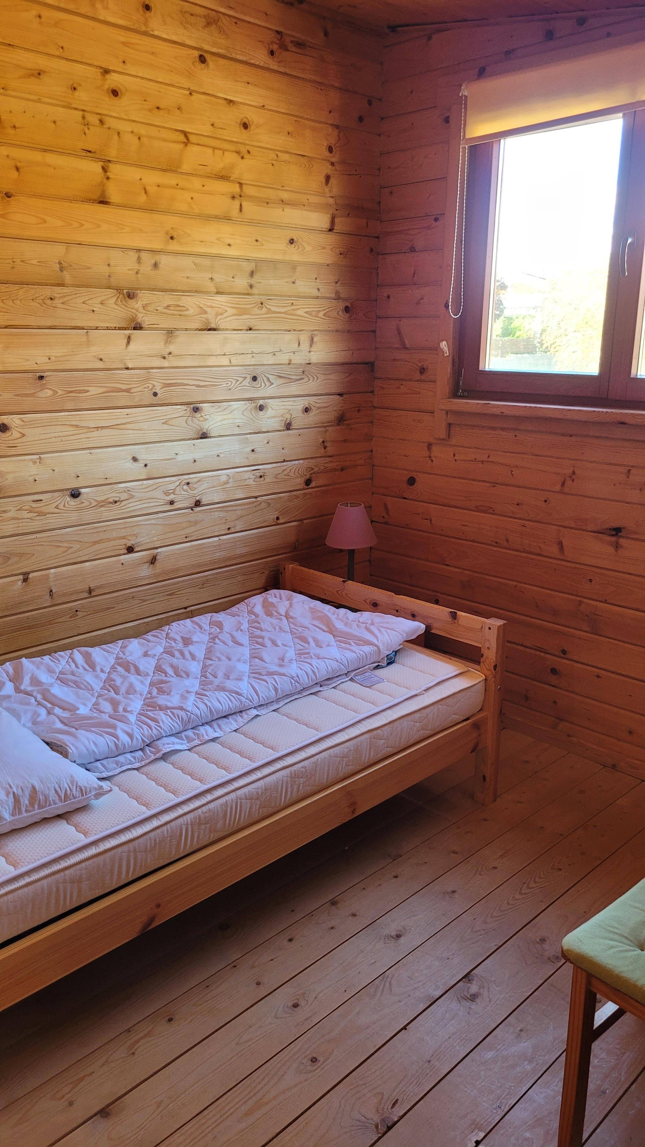 Gemütliches Ferienhaus als Doppelhaushälfte, im Blockbohlenstil, 1, 5-geschossig für 4 Personen möglich plus Baby. Sie können unsere Ferienhäuser, sowie das gesamte Grundstück mit dem Teich genießen.