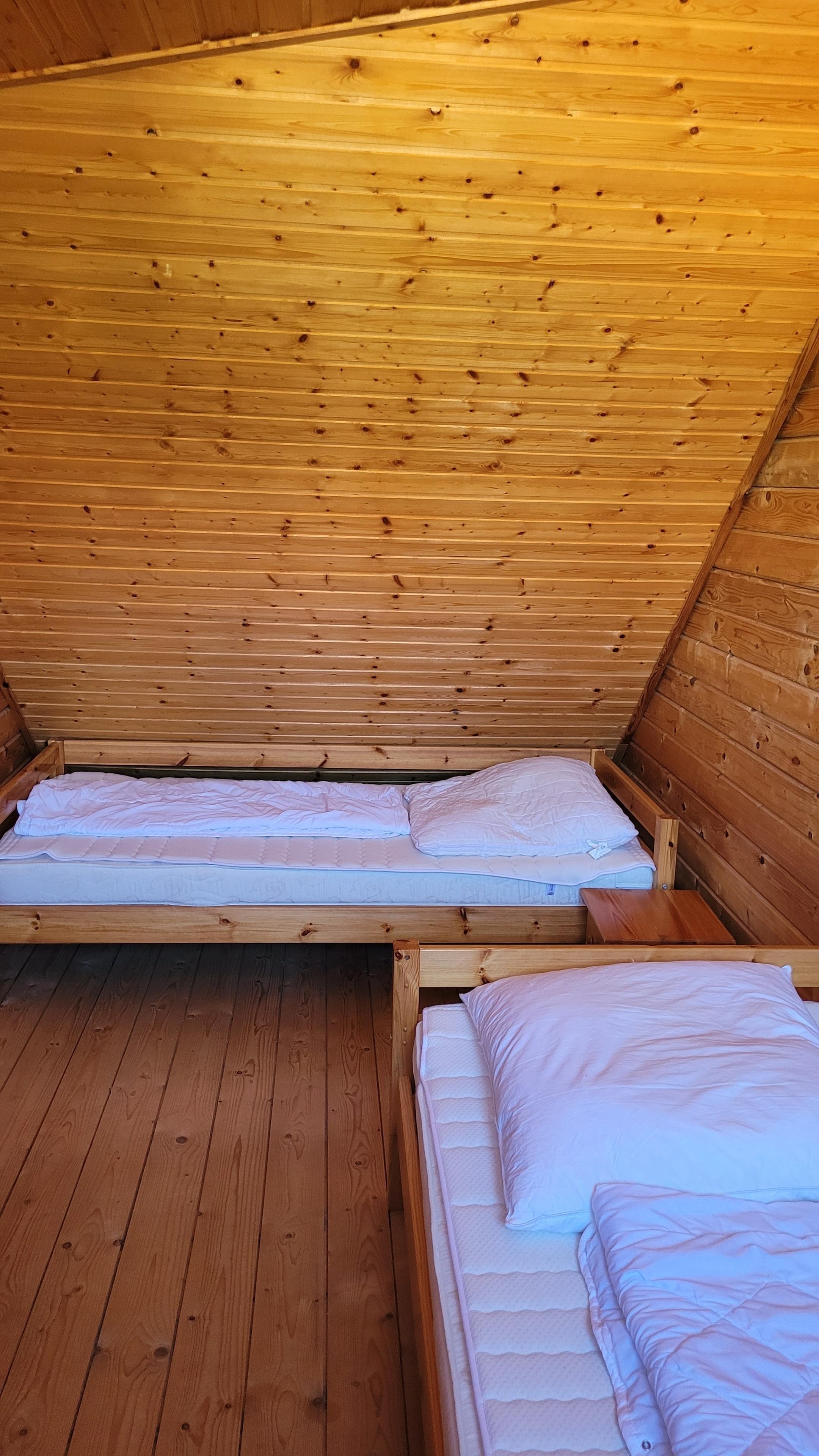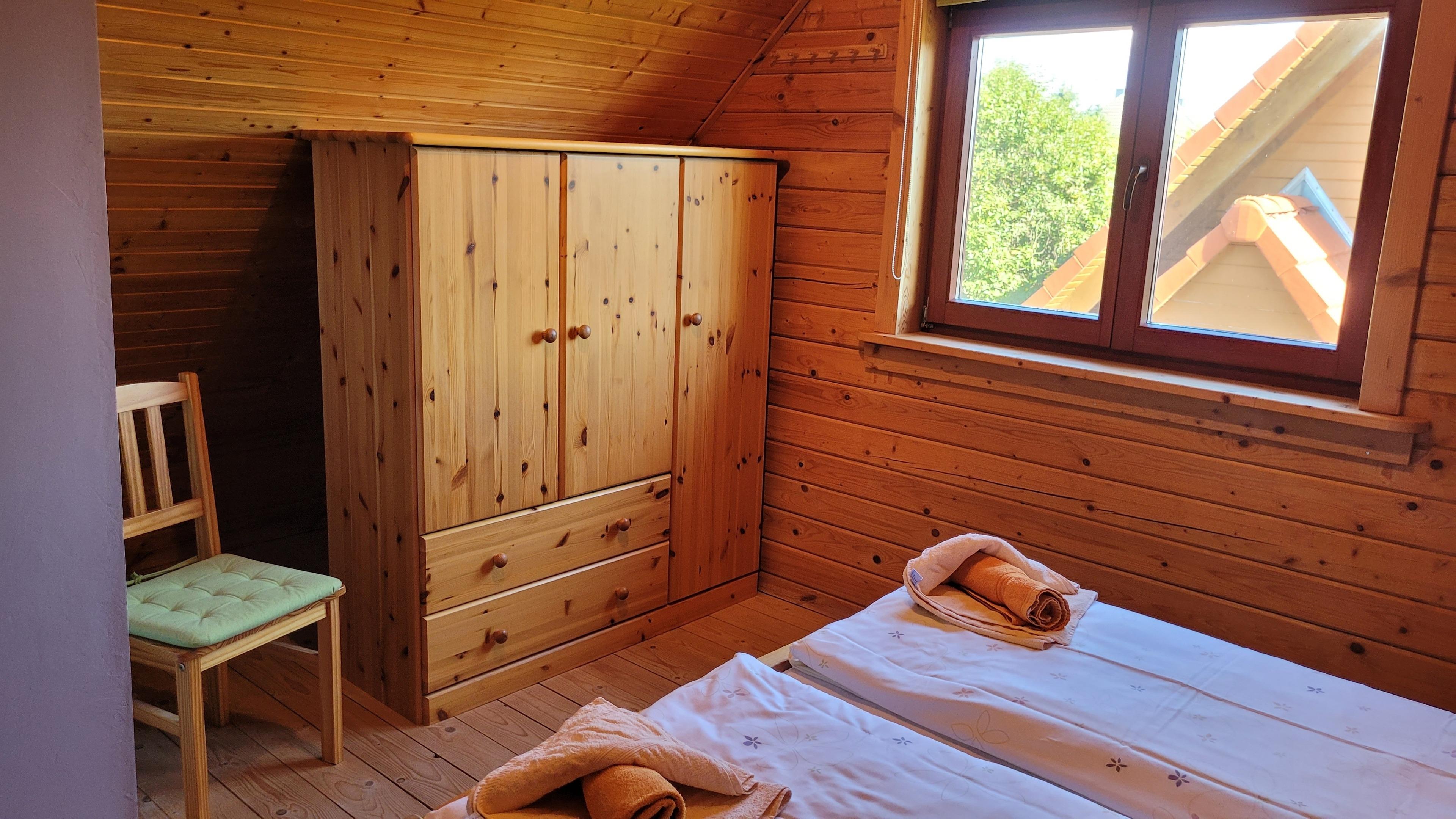 Im Obergeschoß befinden sich die beiden Schlafräume. Der erste Schlafraum enthält ein Doppelbett, der Zweite zwei Einzelbetten. Die Terrasse ist mit Sonnenschirm und diversen Gartenmöbeln ausgestattet.