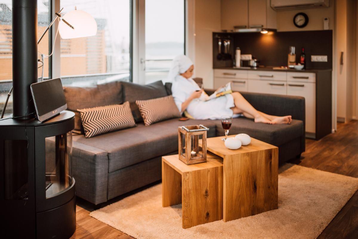 Floatinghouse the Hideaway LP26: besondere Auszeit direkt am See mit Kamin