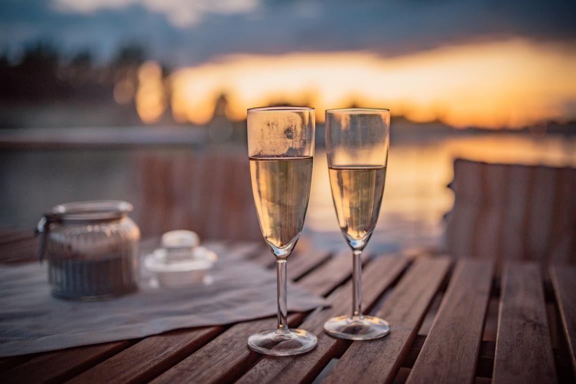 Floatinghouse Grasshopper in Klitten: freistehendes Hausboot (44 m²) direkt auf dem Wasser mit Seeblick und Landschaftsblick. 3 Zimmer, 2 Schlafzimmer, 1 Bad, Platz für bis zu 6 Personen. Offene Küche zum Wohnzimmer mit Ceranherd, Spülmaschine und Elektrogrill. Überdachte Terrasse mit Gartenmöbeln, Sonnenliegen und Steg. WLAN, TV, Klimaanlage, Gaskamin, Sichtschutz, Nichtraucher, kinderfreundlich.