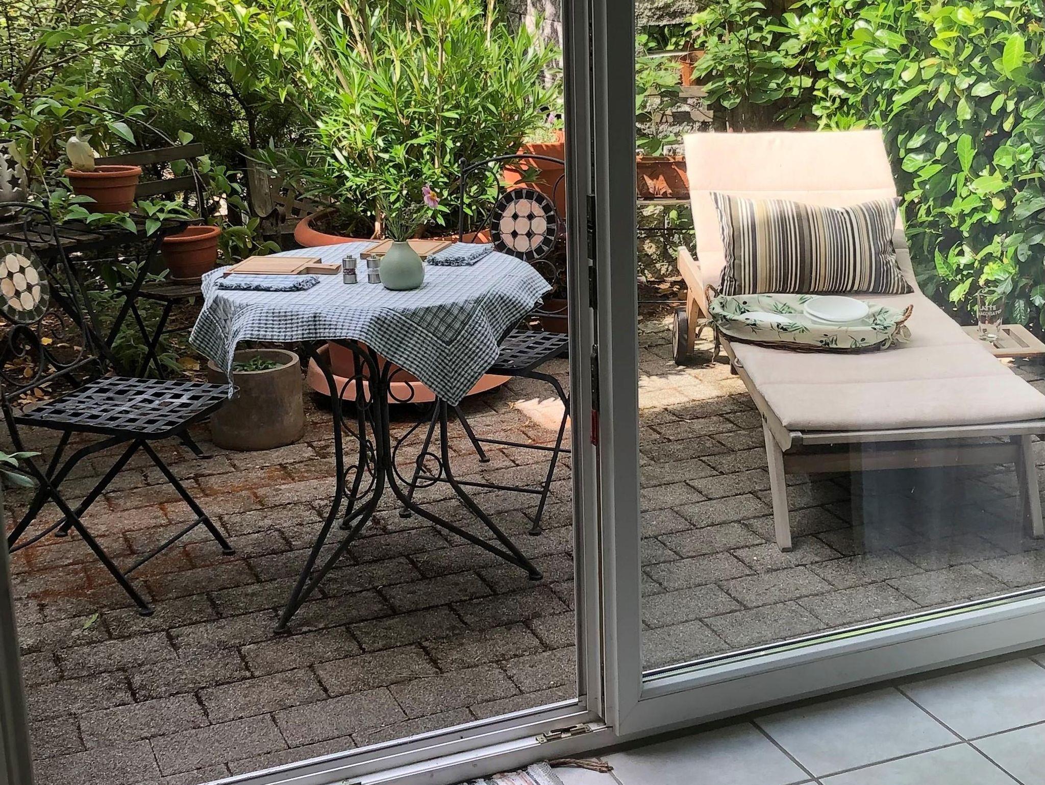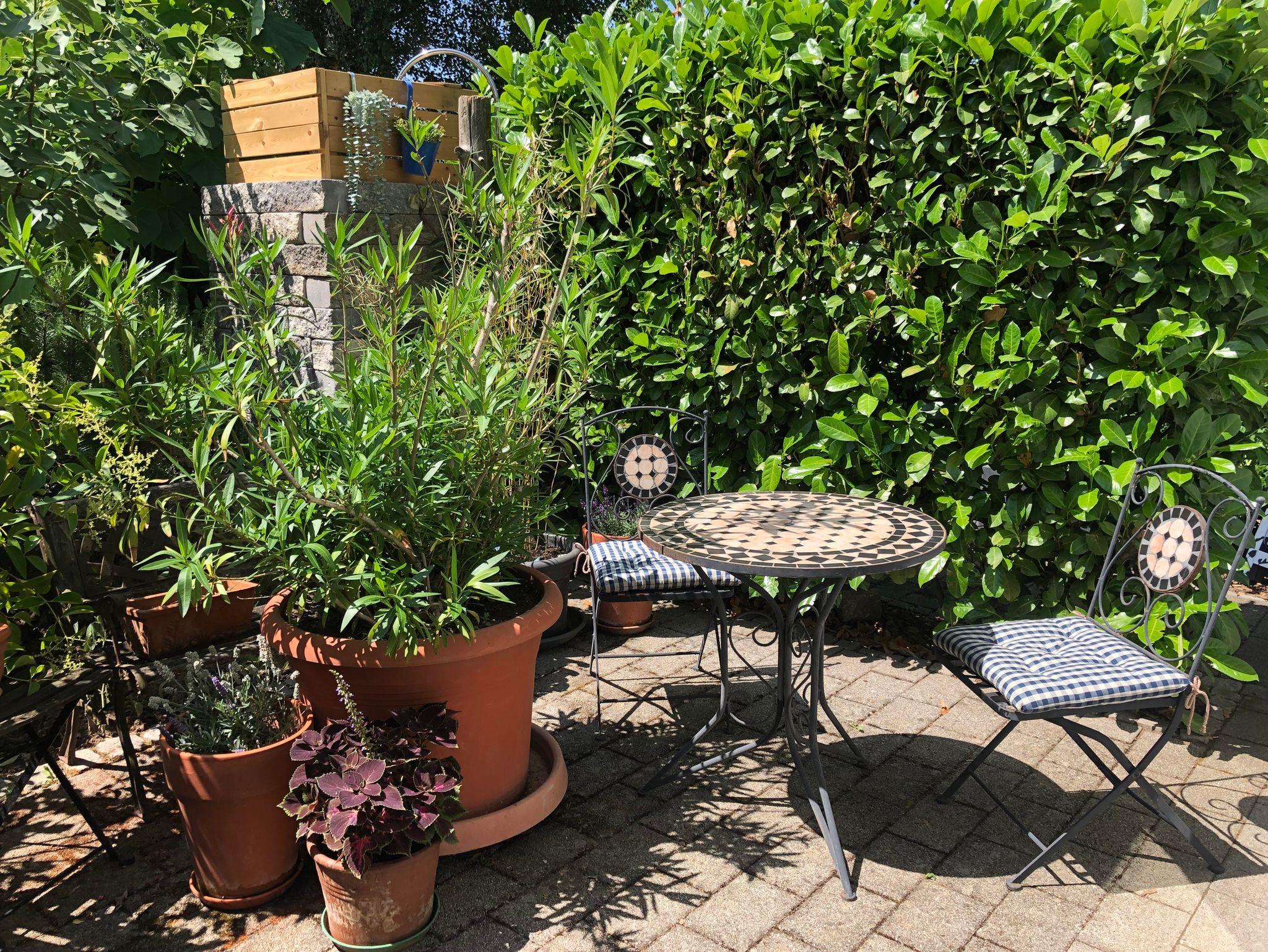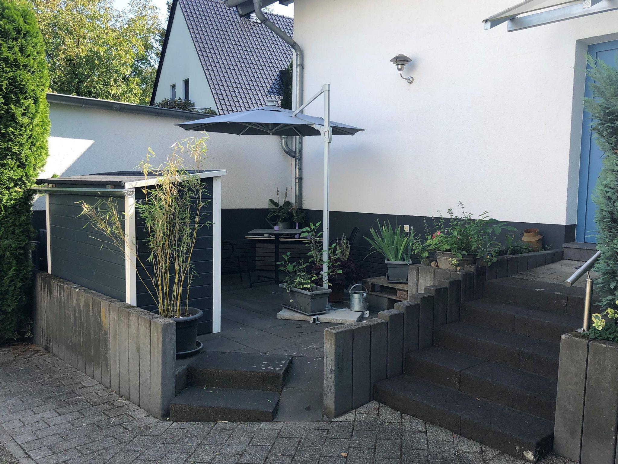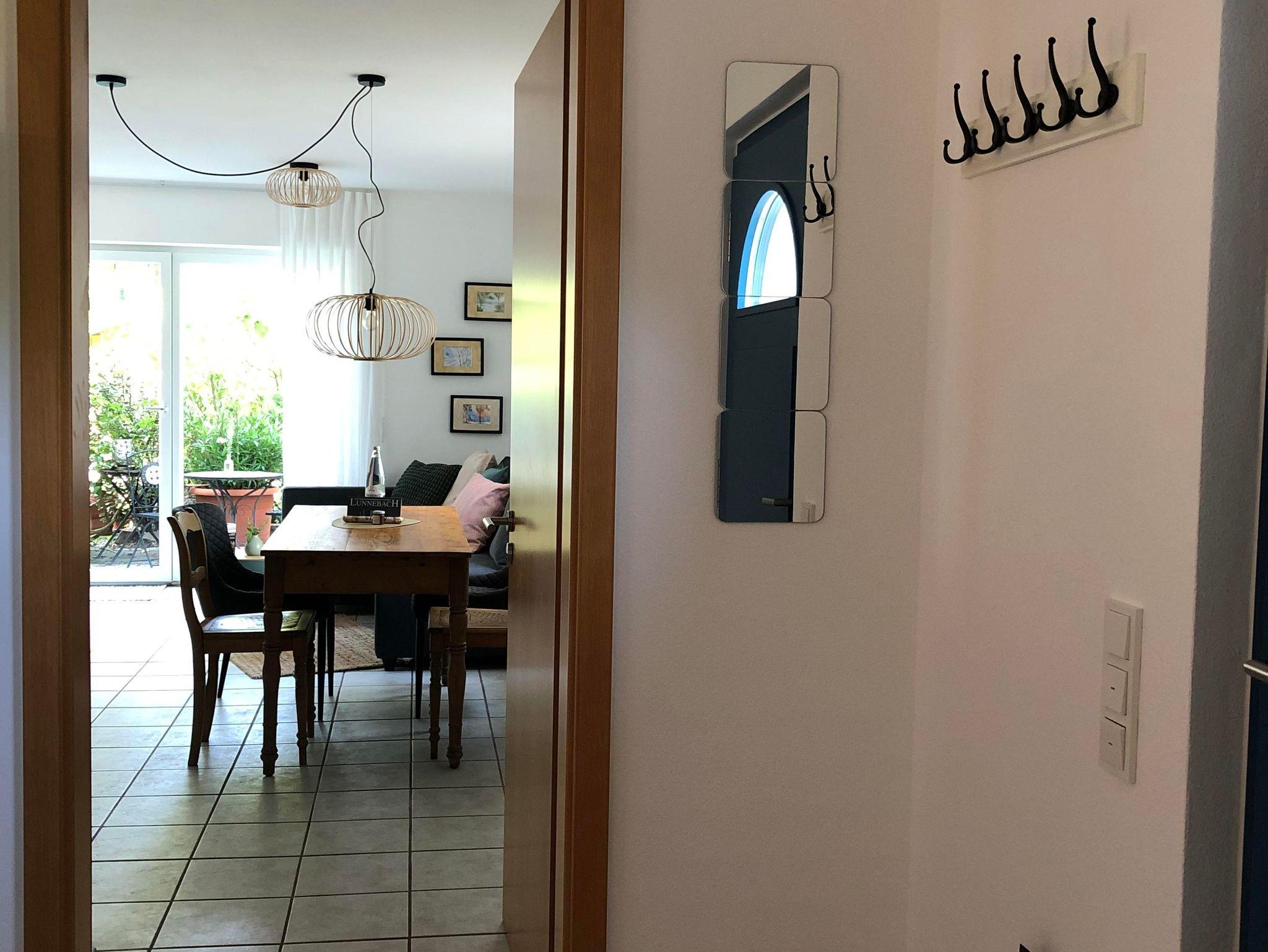Ein Schlafzimmer mit Doppelbett, ein Bad mit Dusche und Badewanne, ein großes Wohnzimmer mit Schlafcouch und eine vollständig eingerichtete Küche, sowie eine Terrasse zum Garten und eine Terrasse vor der Eingangstür laden zum Entspannen und Wohlfühlen ein. Öffentliche, kostenfreie Parkplätze gibt es in unmittelbarer Nähe (15 m), auf Anfrage reservieren wir Ihnen einen Stellplatz am Haus.