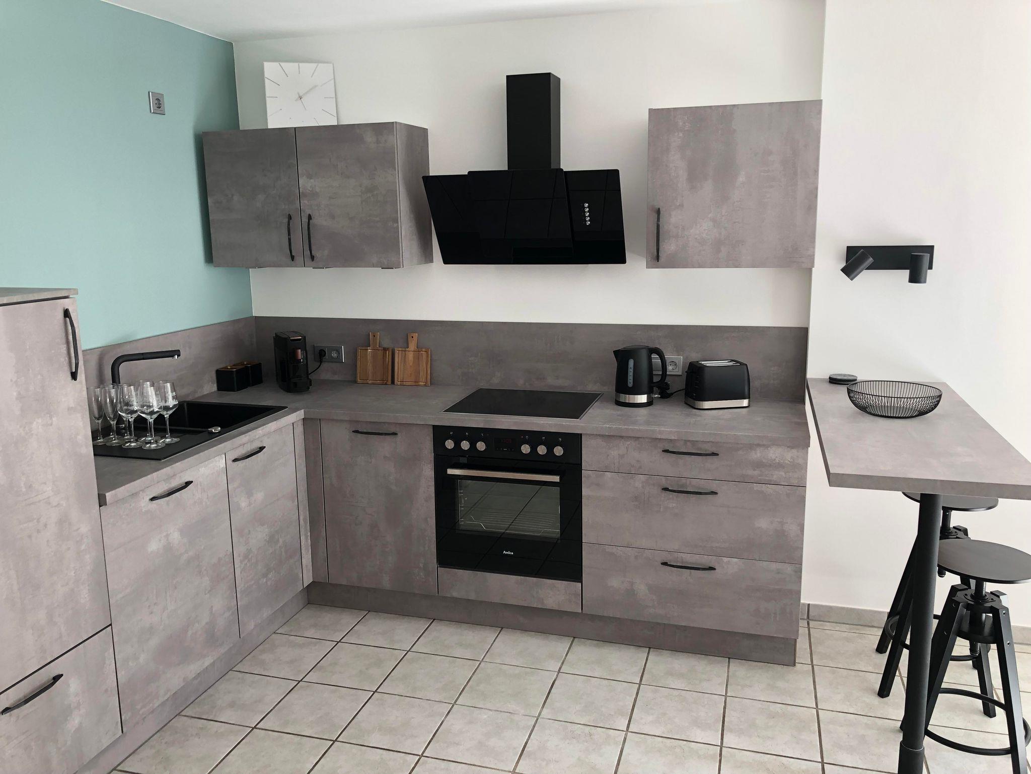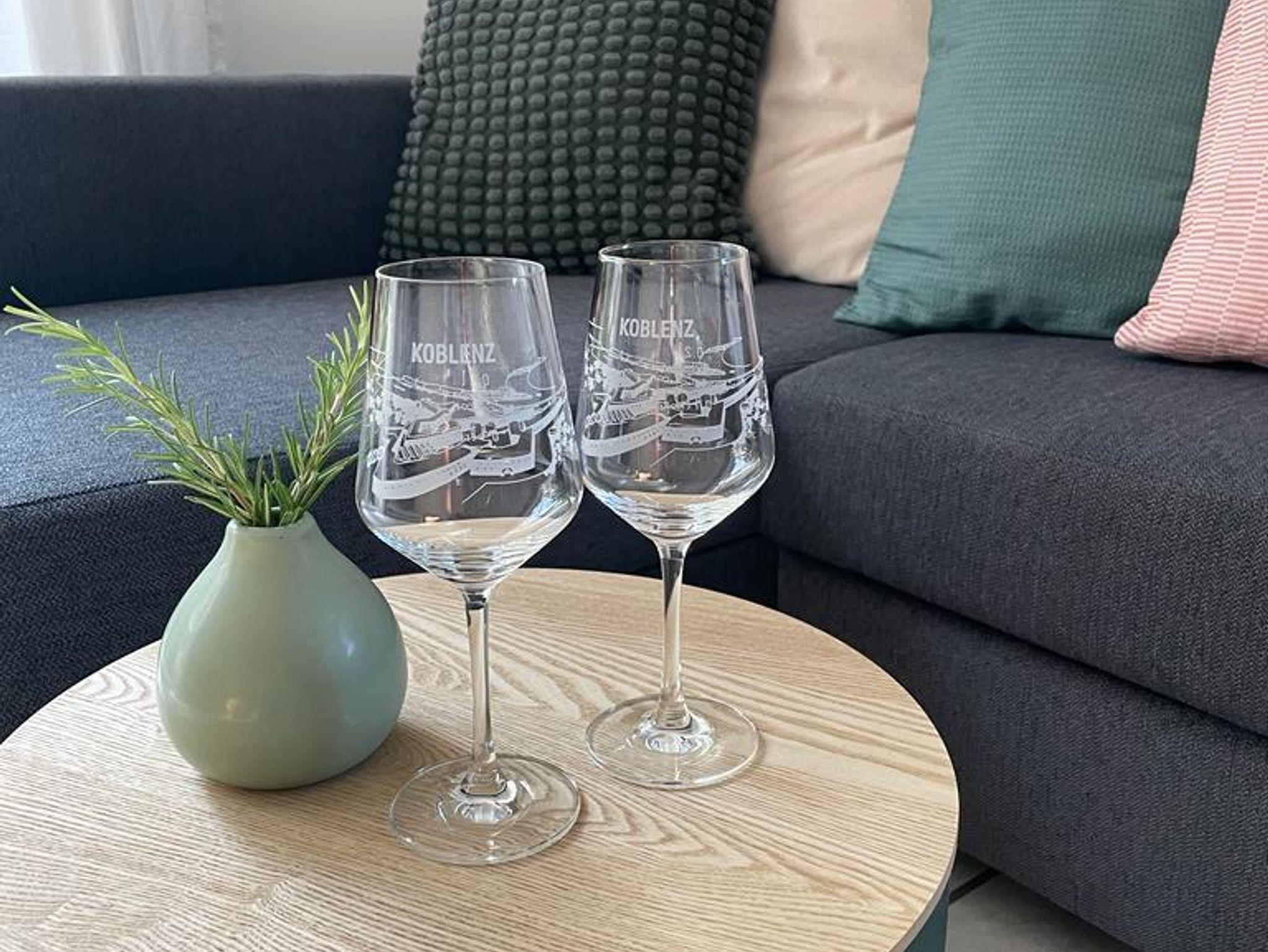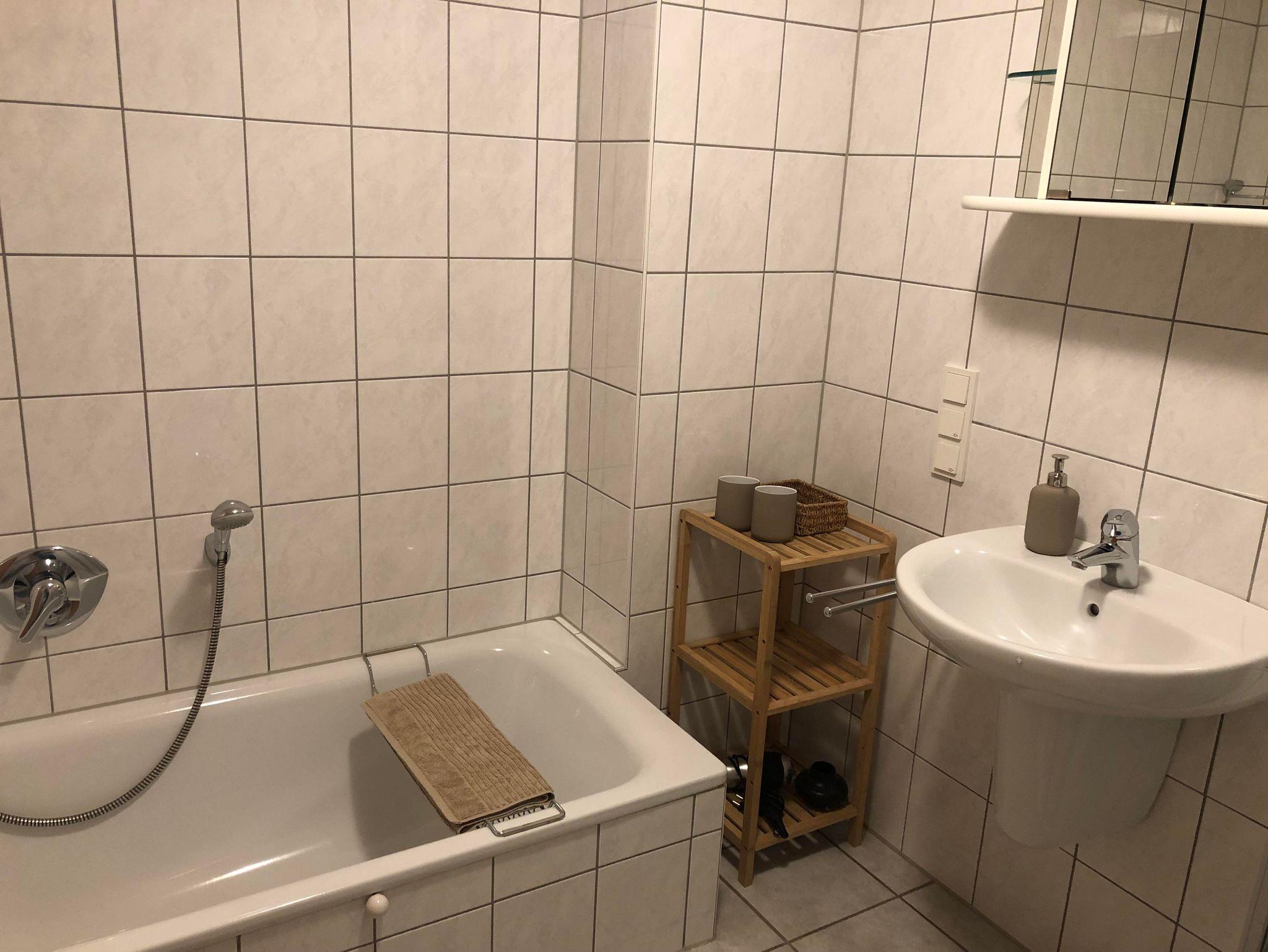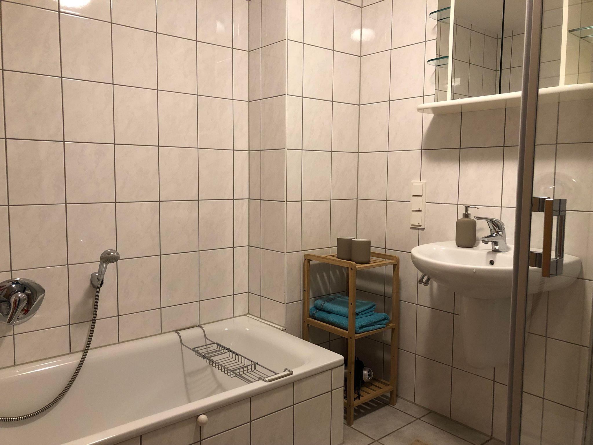 Die Wohnung ist liebevoll eingerichtet und bietet für die Zeit des Aufenthaltes eine Grundausstattung an Putz- und Spülmitteln, Spülmaschinenpulver, expressi-Kapseln, Zucker, Salz, Salz- und Pfeffermühlen, sowie Seife. Ein kleines Sortiment an Mosel-Weinen steht zum Kauf gekühlt bereit. Die Küche ist ausgestattet mit Mikrowelle, Backofen, Herd, Dunstabzug, Spülmaschine, Kühlschrank mit ***Gefrierfach, Toaster, Wasserkocher und einer expressi-Kapselmaschine. Im Wohnbereich befindet sich der Fernseher mit smart-TV und eine Couch, die mit wenigen Handgriffen zu einem 1,44 m x 1,98 m großen Schlafbereich umgebaut werden kann. Im Schlafzimmer steht ein 1,80 m x 2 m großes Doppelbett mit freiem Fußende. Der Schrank bietet mit seinen Einlegeböden, Kleiderstangen und Kleiderbügeln ausreichend Stauraum. Das Bad bietet eine Badewanne und eine Dusche. Fön und Kosmetikspiegel sind vorhanden.