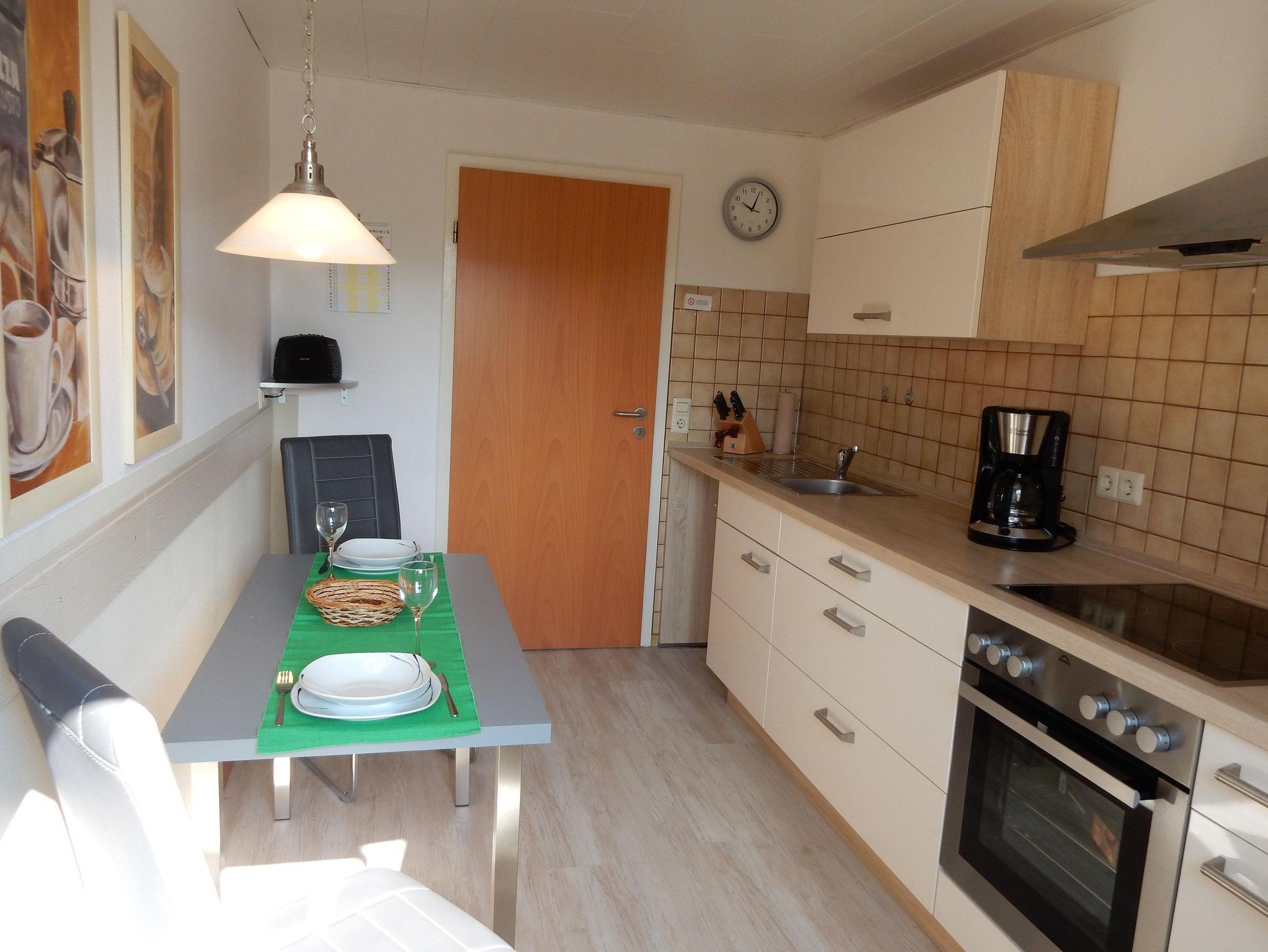Eine moderne, neue und liebevoll eingerichtete Ferienwohnung, mit voll ausgestatteter Küche erwartet sie. Die Nichtraucherwohnung verfügt über ein Schlafzimmer, Wohnzimmer mit Radio/Fernseher/WLAN. Die Wohnung kann mit bis zu 2 Personen belegt werden. Aufgrund der neu verlegten Laminatfußböden / Fliesen ist sie für Allergiker geeignet. Ein Carport befindet sich direkt bei der Parterrewohnung mit separatem Eingang. Tiere sind leider nicht gestattet.