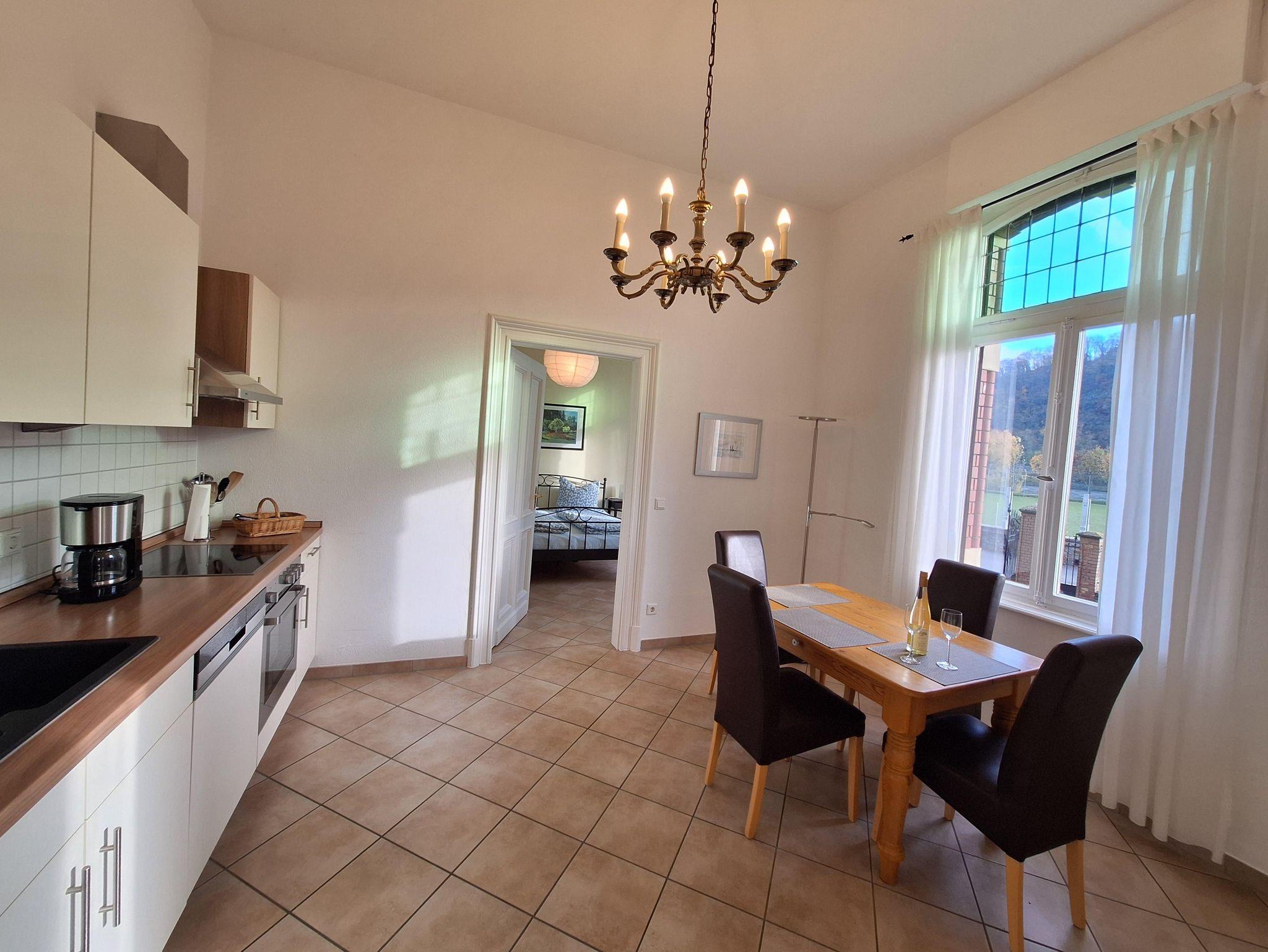 Die schöne 75 m² große und voll ausgestattete Nichtraucherwohnung verfügt über ein Wohnzimmer mit Erker und Blick auf Rhein sowie die Festung Ehrenbreitstein, Sat-TV, Stereoanlage, Esszimmer/Küche mit kompletter Küchenzeile und Essplatz mit Rheinblick, Schlafzimmer für 2 Personen mit Rheinblick sowie ein großzügiges Tageslichtbad zur Gartenseite mit Komfortdusche. Der Flur / Garderobe mit Jugendstil-Fenster und zusätzlicher Sitzgelegenheit eingerichtet.