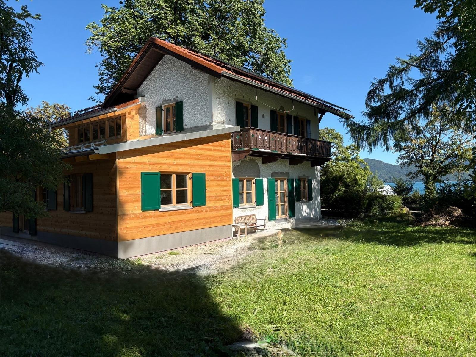 Draußen wartet ein echtes Highlight: eine sonnige Terrasse und ein riesiges Grundstück mit über 2500?qm Garten, das Freiheit, Natur und Privatsphäre vereint. Der Walchensee liegt direkt gegenüber nah genug, um ihn zu spüren, und weit genug, um die Ruhe des Gartens zu genießen.