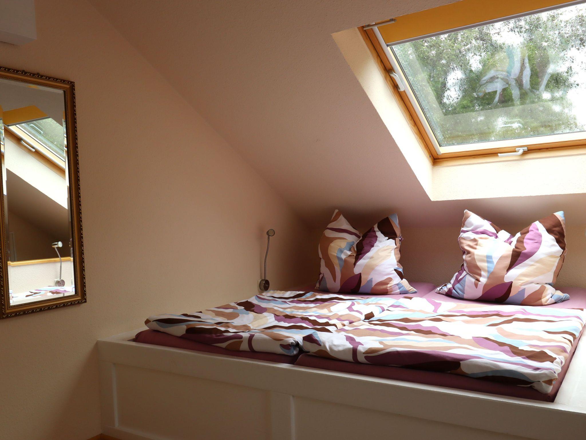 Die ca. 30 m² große Ferienwohnung hat einen separaten Eingang, ein Wohnzimmer, ein Schlafzimmer, eine Küchenzeile und ein Duschbad.