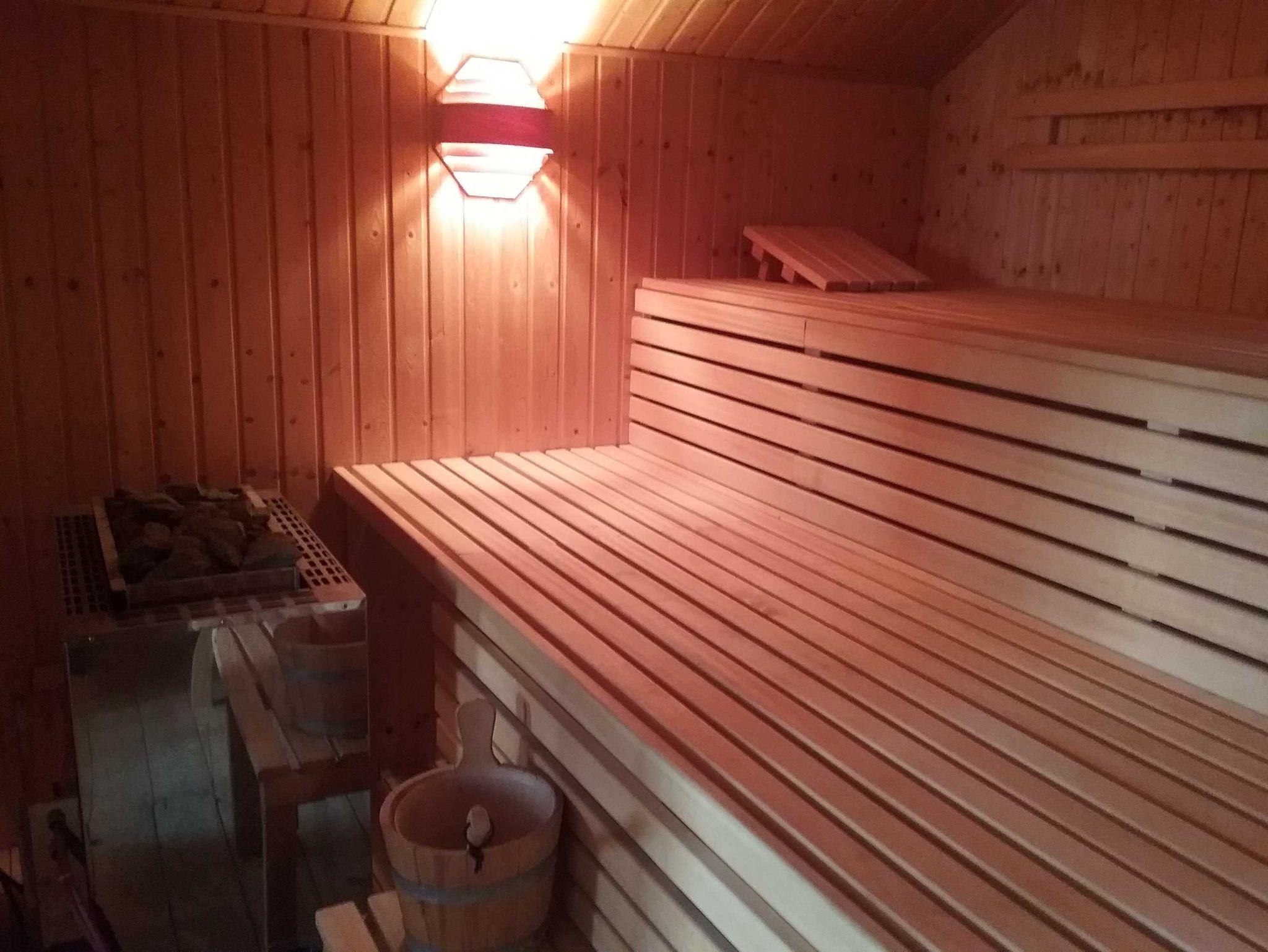 OG: Große Sauna für sechs Personen und Aufguß (extra Berechnung), 3 weitere Betten.