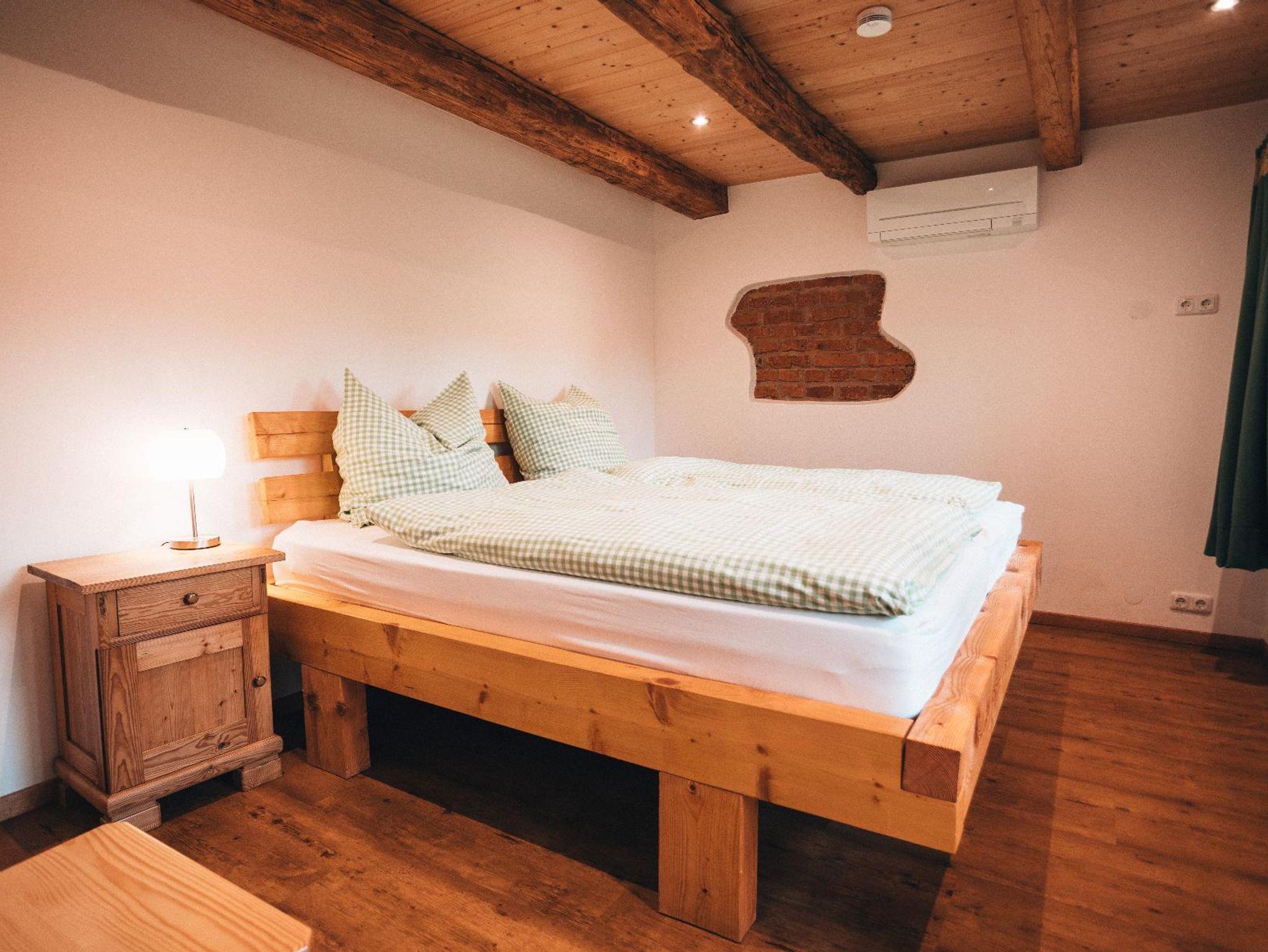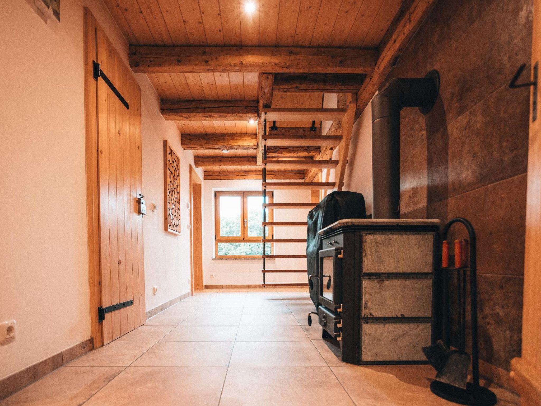 Unser mitten im Wald gelegenes Woidhaus verspricht viel Erholung und Freude. Ihre direkten Nachbarn sind nur die Tiere des Bayrischen Waldes. Hier sind Sie am idealen Startpunkt für Wanderungen, Mountenbike, Hike und Bike! Im Winter können Sie in unmittelbarer Nähe Skifahren und Langlaufen. Direkt vor der Haustür ist Ihr eigener Schlittenhang und Startpunkt für Schneeschuh Ausflüge. Ein Paradies für Familien Biker und Wanderer, oder auch nur welche, die absolute Ruhe brauchen! Am Fuß des Pröllers gelegen, haben Sie im Winter das perfekte Skigebiet vor der Haustüre. In ca. 30 Minuten sind Sie am großen Arber oder in Tschechien. Das Woidhaus liegt am Ende einer Privatstraße und ist bis zum nächsten öffentlichen Weg sind es ca. 800 m. Also ideal für Familien mit Kindern, die Freiraum brauchen oder auch solchen, die sich nach Ruhe sehnen! Am ca. 5 Gehminuten erreichbaren Weiher kann man die Seele baumeln lassen. Die Fische freuen sich über Futter und lassen sich beim Fressen auch gerne mal zuschauen. In der Nähe ist Grün und St. Englmar. Dort gibt es zwei Freizeitparks, Indoorspielhalle, Museen, Klettergarten, Restaurants, unzählige Wander- und Fahrradrouten. Im nahe gelegen Viechtach kann man gut und günstig einkaufen. Auch der Pfahl mit seinem Klettermöglichkeiten, ein Freibad und Hallenbad befinden sich ebenfalls dort. In ca. 20 km Entfernung erreichen Sie die Pfingstritt Stadt Bad Kötzting wo eine Spielbank und das Erlebnisbad AquaCur nur zwei der vielen Highlights darstellen. Das Woidhaus ist ein altes Bauernhaus, welches wir die letzten Jahre mit viel Liebe zum Detail renoviert haben. Teilweise wurde es auch außen noch im Urzustand gelassen um den Flair zu erhalten. So auch die etwa 200 Jahre alte Scheune. Es besteht aus 3 Stockwerken. Das untere Stockwerk ist noch im Urzustand. Der Mittlere und obere Stock wurde als Wohnbereich komplett neu ausgebaut. Ein Bad mit Regendusche ist nur eine Besonderheit. 2 Schlafräume eines mit Doppelbett, eines mit Doppelbett und Beistellbett sowie eine Wohnküche mit ausziehbarer Couch bietet Platz für bis zu 6 Personen. Im oberen Stockwerk sind ein Balkonzimmer mit 4 Betten und ein Doppelzimmer sowie eine Nasszelle mit Dusche/WC und herrlicher Aussicht ins Grün. Insgesamt haben im Woidhaus 11 Erwachsene bequem Platz. Etwa 5000m² Wiesenflächen umrunden zum Haus und bieten genug Platz zum Toben oder entspannen. Nehmen Sie Platz am großen, gemütlichen Tisch der Wohnküche oder machen Sie es sich auf unserer „Gredbäng“ gemütlich und genießen Sie Ihren Urlaub.