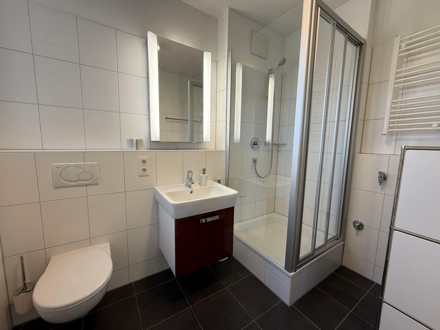 Das Badezimmer entführt Sie in eine Oase der Entspannung. Es verfügt über eine Dusche mit einer Wanne, die Ihnen die Möglichkeit gibt, entspannende Bäder zu nehmen. Um Ihr Wohlbefinden zu gewährleisten, sind Handtücher und Badetücher bereits für Sie bereitgelegt, ebenso wie ein Haartrockner, ein Kosmetikspiegel und weitere Annehmlichkeiten.