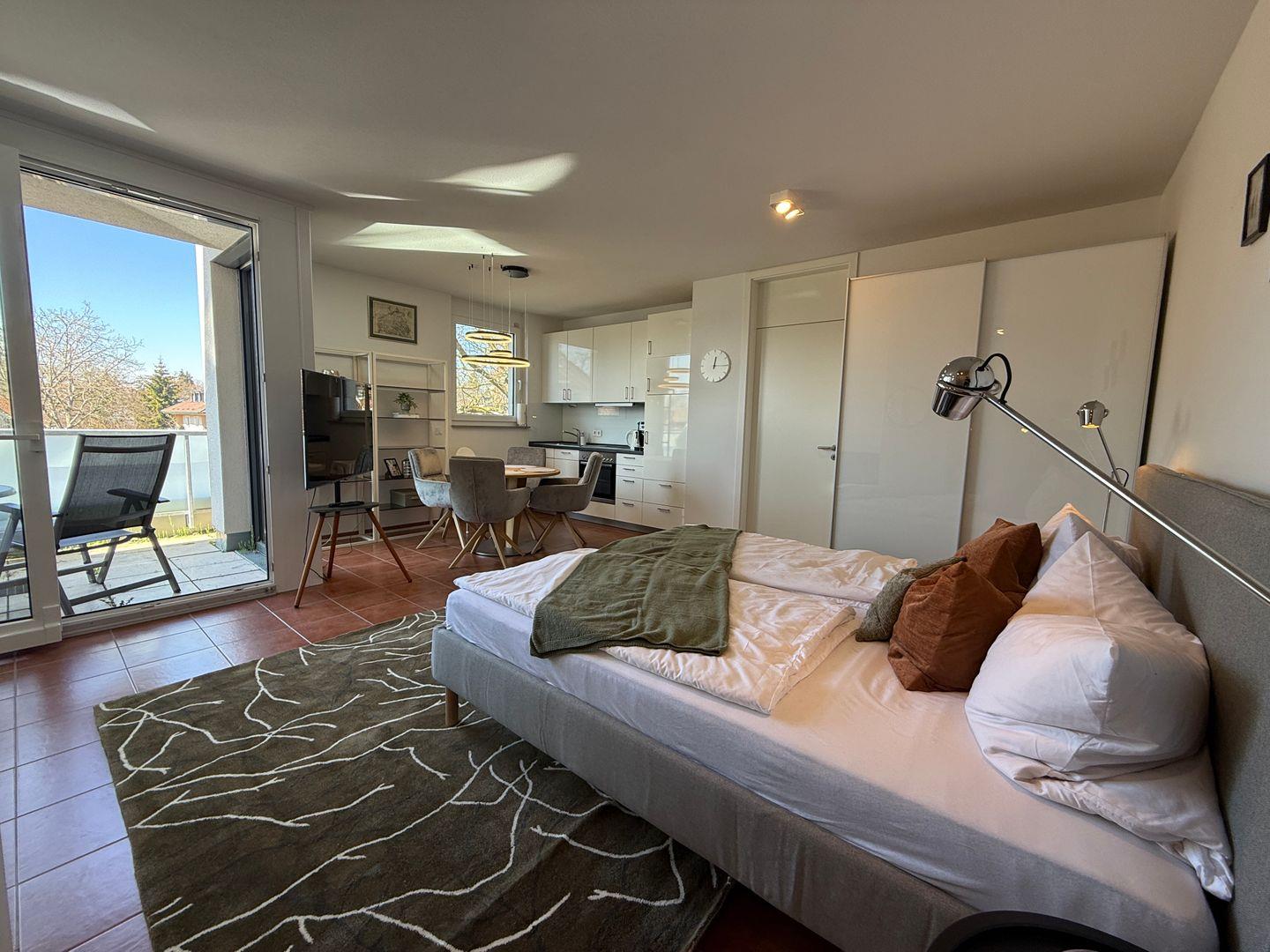 Willkommen im Lieblingsplatz Konstanz, einem modernen Penthouse im Herzen von Konstanz. Die geschmackvoll eingerichtete Unterkunft bietet auf 30 m² Platz für bis zu 3 Personen und überzeugt mit einem unkomplizierten Zugang zu den schönen Uferpromenaden und der Innenstadt. Genießen Sie die Annehmlichkeiten einer voll ausgestatteten Küche, einen geschützten Balkon und einen Zugang zu WLAN. Familien sind herzlich willkommen, Haustiere sind auf Anfrage erlaubt. Erleben Sie entspannte Tage am See!