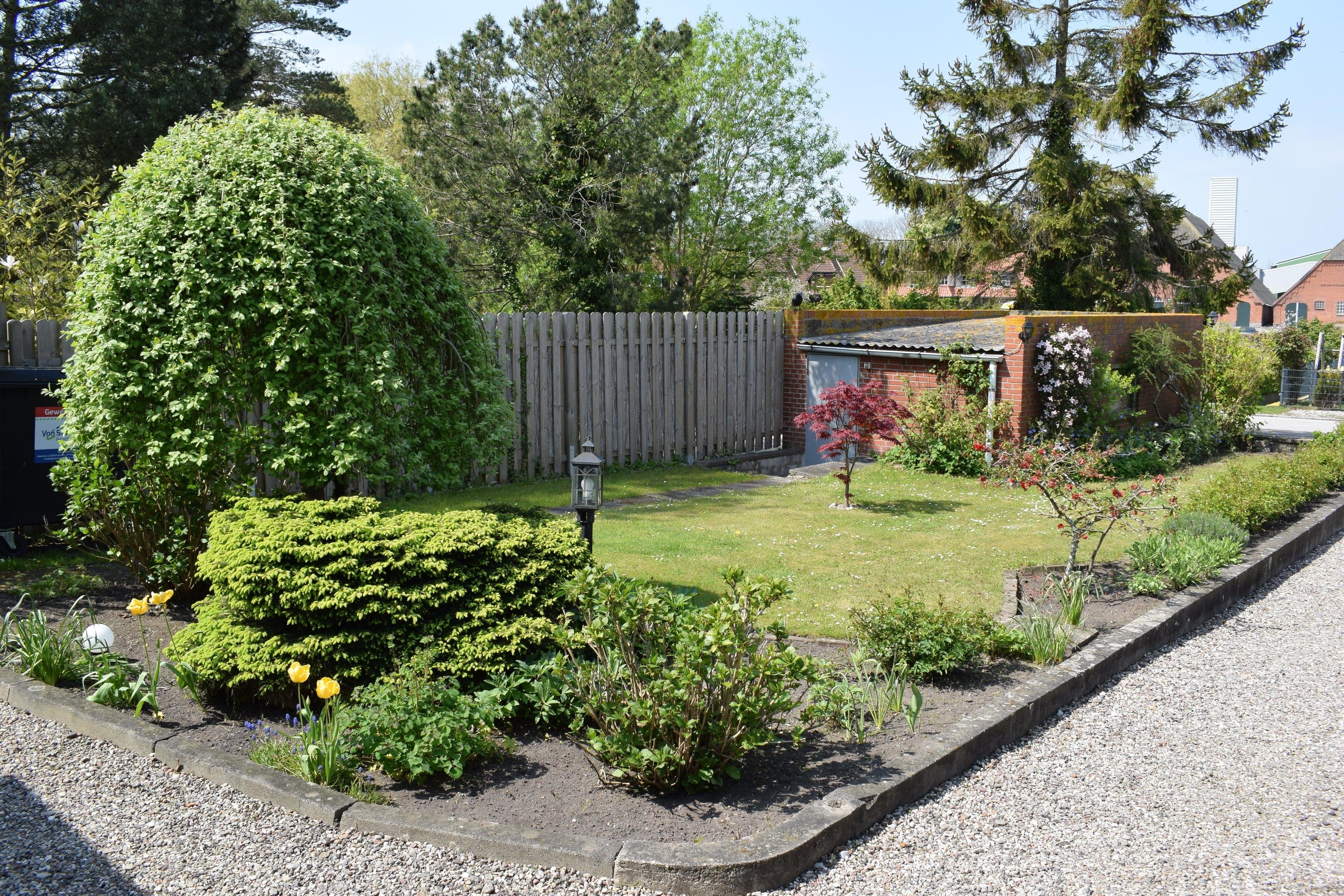Im Innenhof ist eine kleine Sitzecke, weiter geht es in den Garten mit bestem Ausblick über die Felder. Dort ist eine weitere gepflasterte Ecke mit Tisch, Stühlen und Liegen für Grillabende und Sonnenbäder. Der Garten lädt zum Faulenzen ein. Ein Parkplatz befindet sich direkt vor der Tür. Ein Abstellraum für Fahrräder ist ebenfalls vorhanden.