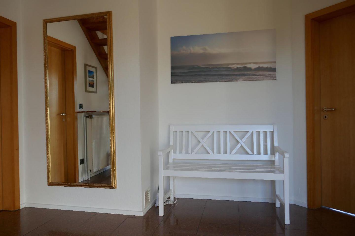 Im Haus erwarten Sie 2 Etagen gemütliches Wohnen. Das Wohnzimmer ist ausgestattet mit einem Granitfußboden, TV-Gerät, CD-Player sowie div. Bluetooth-Abspielgeräte. Das lichtdurchflutete Schlafzimmer mit Kirschbaumparkett bietet einen fantastischen Blick in den großen Garten. Insgesamt befinden sich 3 Schlafzimmer im Haus, jedes ist mit einem Doppelbett ausgestattet.