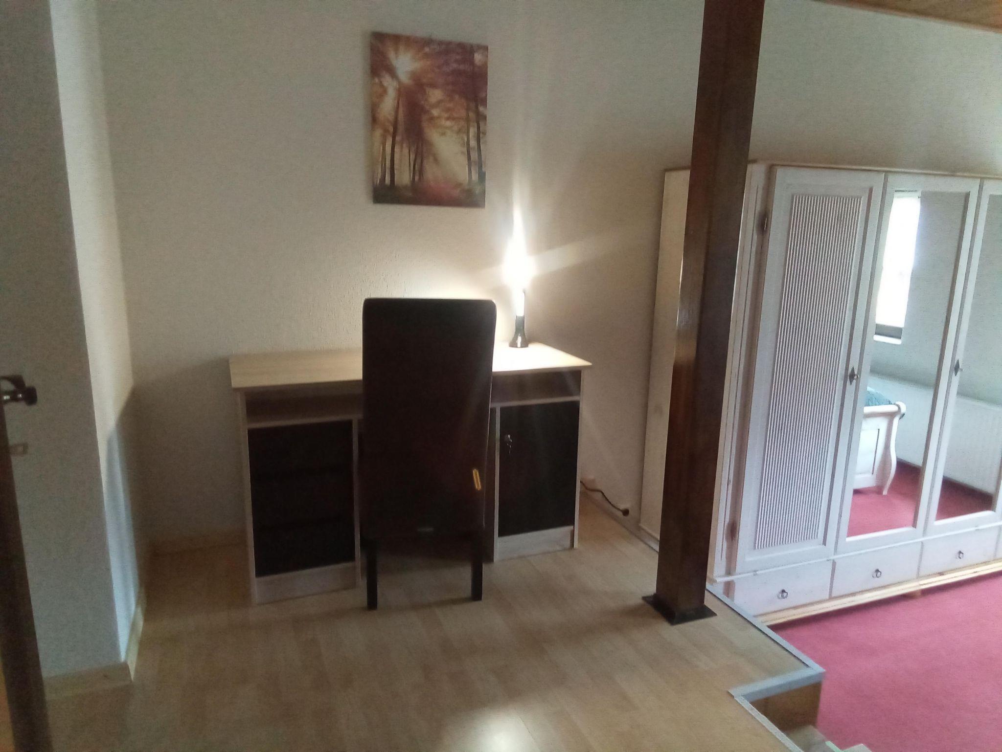 Großzügiges Schlafzimmer mit Doppelbett und Schlafsofa ( für Kinder bis 12 Jahre geeignet ), großer Kleiderschrank sowie ein Arbeitsplatz.