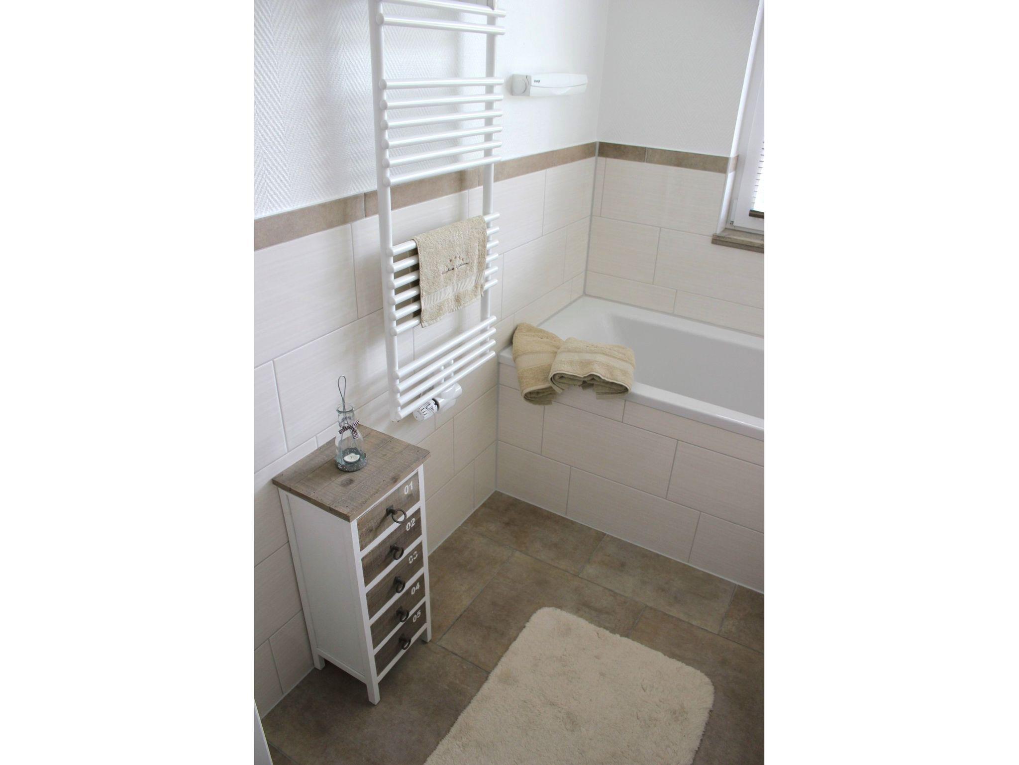 Im Obergeschoss finden Sie zwei separate Schlafzimmer (eins mit Doppelbett und zusätzlichem Flat-TV, eins mit zwei Einzelbetten). Für Kinder kann der Spitzboden zusätzlich noch als Schlafgelegenheit genutzt werden. Hierzu stehen zwei Sessel, die zu Betten ausgeklappt werden können zur Verfügung. Das zweite Badezimmer im OG ist mit Badewanne/WC und Fön ausgestattet.