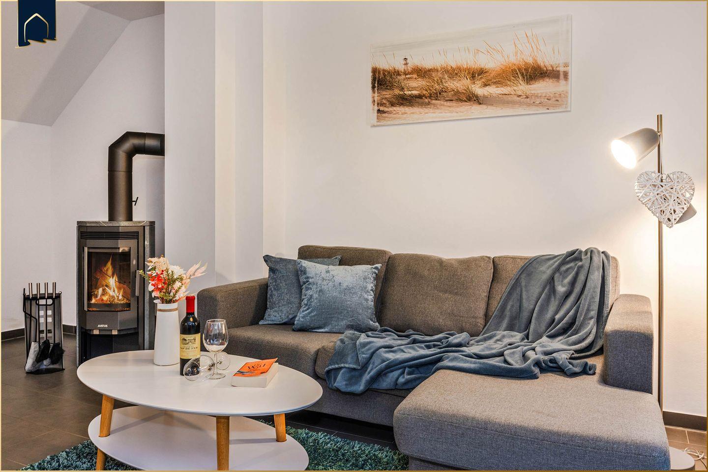 Dieses stilvolle Ferienhaus in ruhiger, ländlicher Lage bietet den idealen Rückzugsort für Familien, Paare oder kleine Reisegruppen. Umgeben von Wiesen, Wald und einer intakten Natur erleben Sie Erholung pur – und das auf zwei komfortablen Etagen. Mit zwei Schlafzimmern, zwei voll ausgestatteten Badezimmern und einem zusätzlichen Gäste-WC ist ausreichend Platz für bis zu vier Personen. Der helle Wohnbereich mit Kamin lädt zu entspannten Abenden ein, während die offene Küche mit Backofen, Gefrierfach, Geschirrspüler und vielen weiteren Annehmlichkeiten die Selbstversorgung leicht macht.